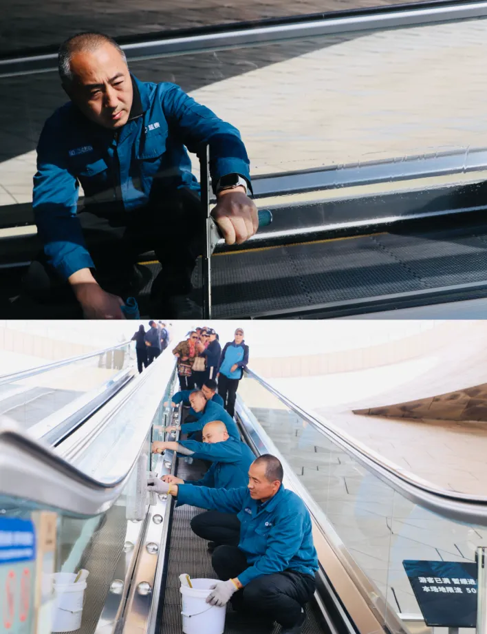 特别是针对游客频繁接触的星空扶梯区域,保洁人员更是加大了清洁和消毒的力度与频次。他们使用专业的清洁剂和消毒工具,对扶梯的每一个台阶、每一处扶手都进行了仔细的擦拭和消毒,确保游客在享受美景的同时,也能拥有一个健康安全的游览环境。