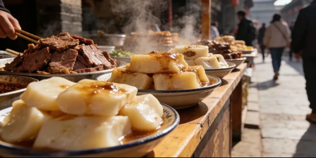 - 平遥碗托:凉拌爽滑,香辣开胃,街头必吃。