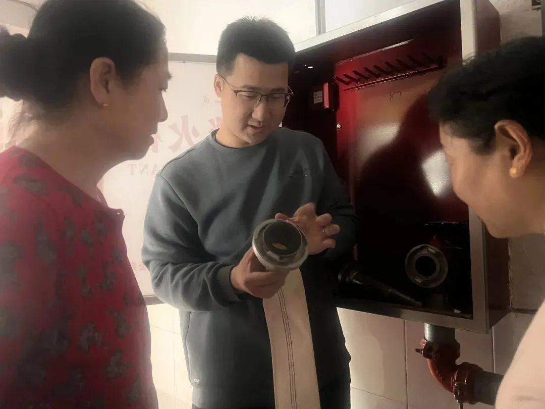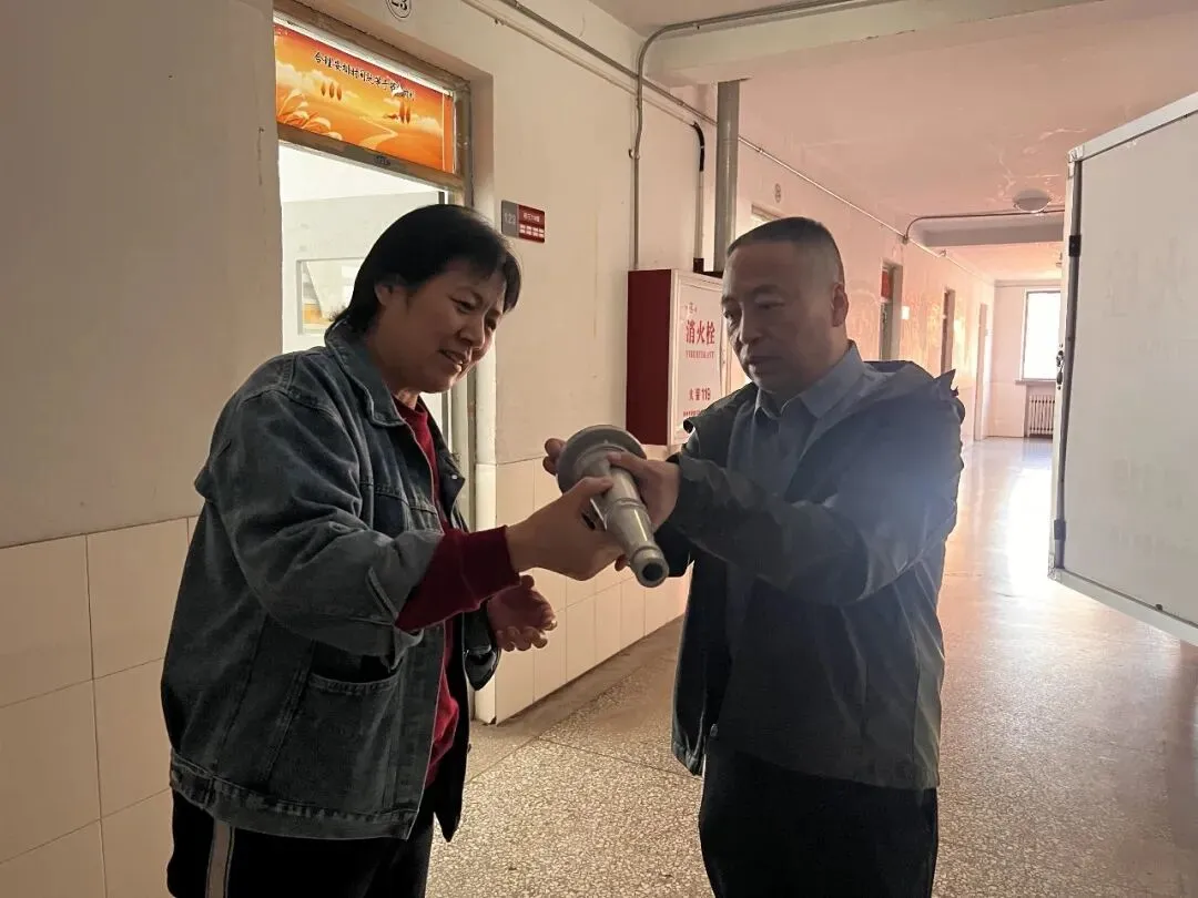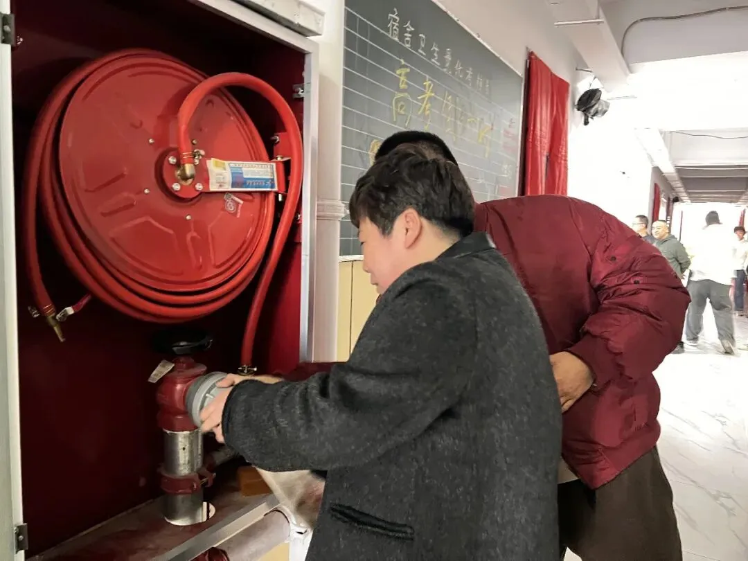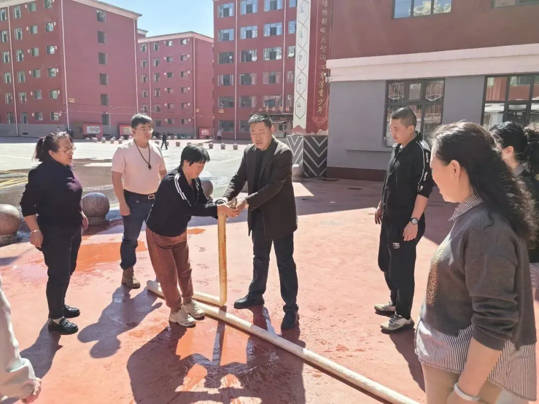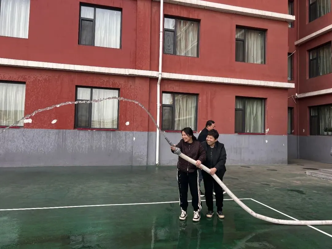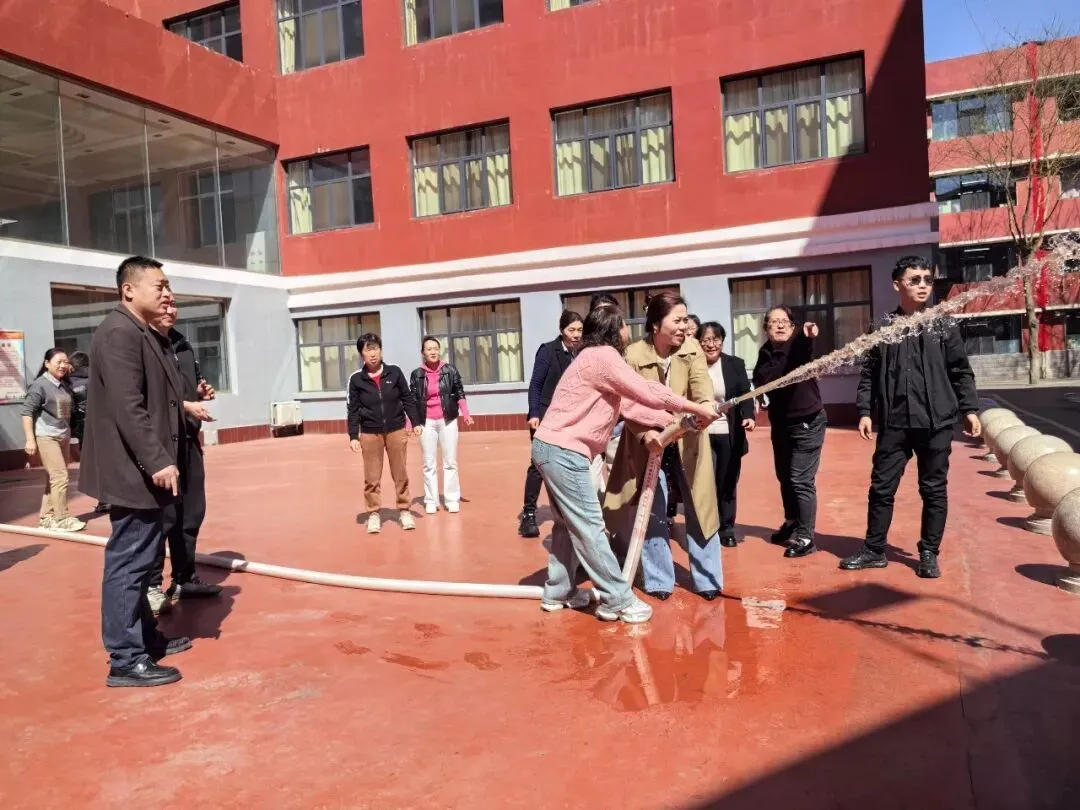 “提起灭火器,拔掉保险销,握住喷管对准火源根部...”在消防培训现场,安全副校长郝胜利结合校园火灾案例,为生活老师及教育处教师详细讲解初期火灾扑救要领。参训人员分组进行消火栓组装实操,从铺设水带、连接接口到启动水泵,每个环节都严格按标准操作。生活老师表示:“以前只见过消火栓,今天亲手组装才知道每个部件的作用。这样的培训让我们在面对突发情况时更有底气。”教育处教师表示:“作为学生管理者,必须熟练掌握消防技能,才在火灾来临时做到临危不乱,正确处置,在关键时刻保护学生安全。”