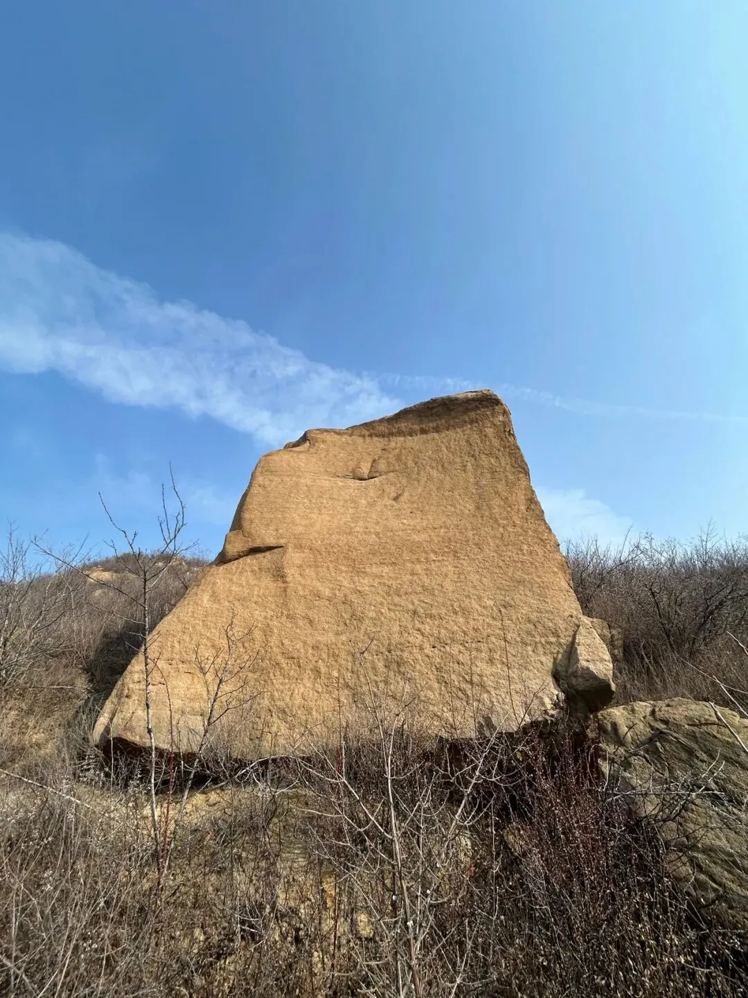 我们又往后山走了走。山上风很大。西风吹来,荒草摇摆。这块大石头像一面镜子,是干什么用的呢?