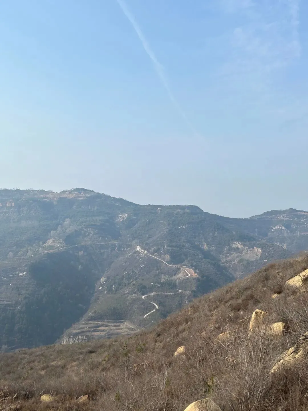 远处的盘山公路。一年多过去了,不知道磺厂村的石窟现在怎么样了。