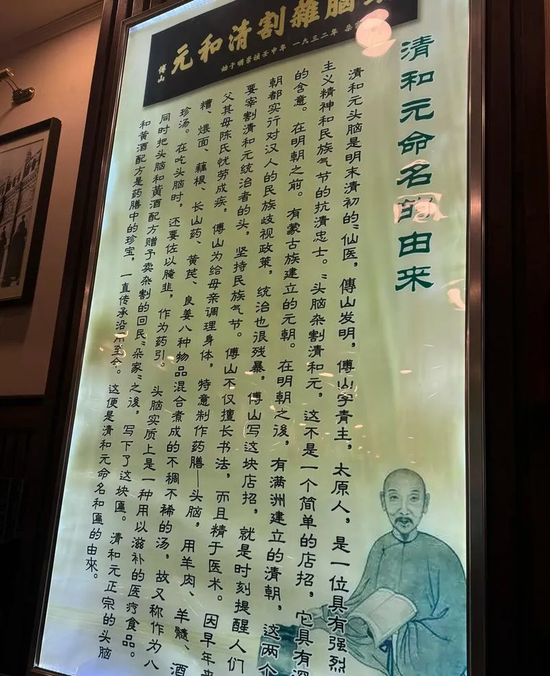 头脑是太原的特色早点,很多外地人第一次听说这名字都懵,以为是什么黑暗料理,其实就是羊肉汤的一种,但做法讲究,清和元这家店做头脑有上百年历史了,汤底用羊肉、藕、山药、黄芪、良姜熬制,喝起来既有肉香又有药香,滋补但不燥,冬天喝暖身,配上腌韭菜和帽盒(一种油炸的面食),这才是完整的一套,本地人都知道,入冬以后去清和元喝碗头脑,这一冬天都不容易感冒。
