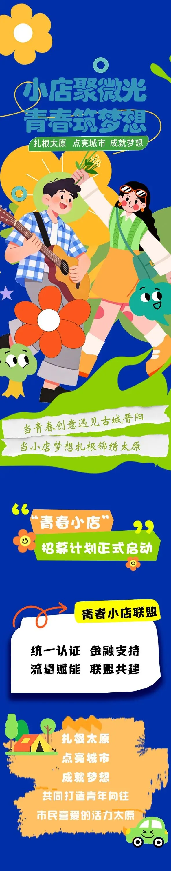 为深入贯彻落实青年发展友好型城市建设要求,积极借鉴全国多地共青团培育“青春小店”的成熟经验,通过统一认证、金融支持、流量赋能、联盟共建等方式破解青年创业融资难、运营弱、流量少等痛点,激活城市小微经济活力,共青团太原市委员会正式启动“青春小店”招募计划,现面向全市公开招募。