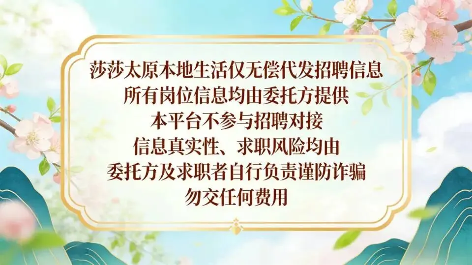 工作地点:太原市小店区指定工作区域(根据现场安排)
