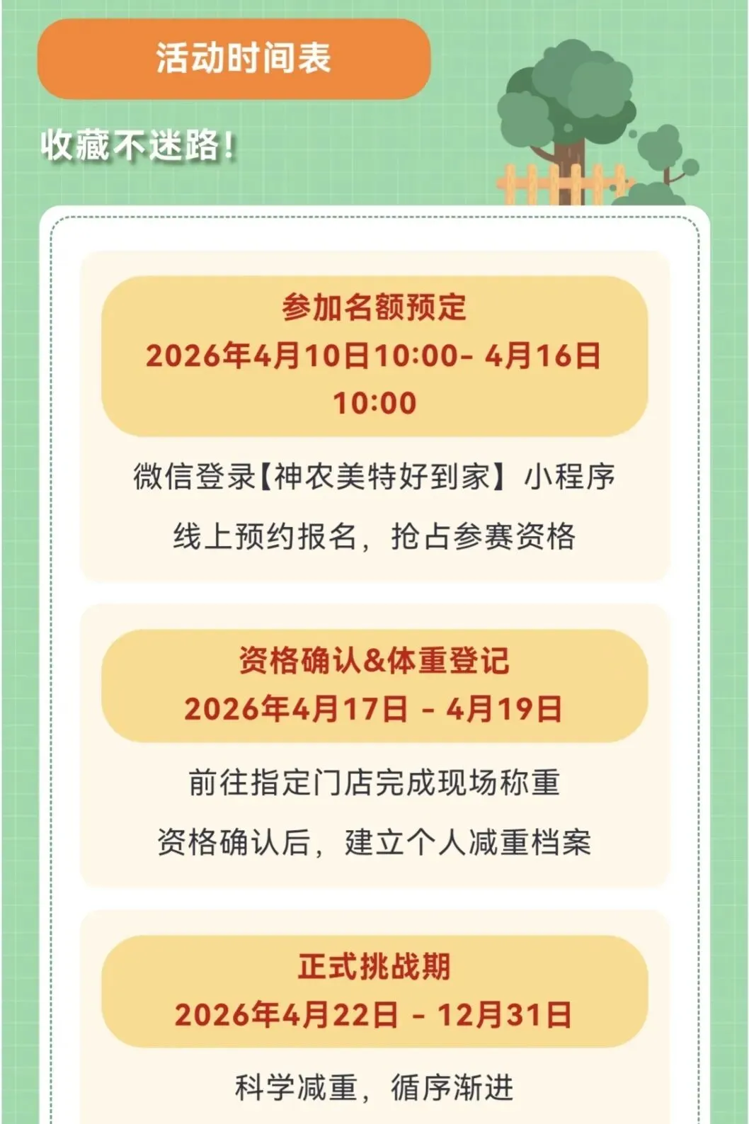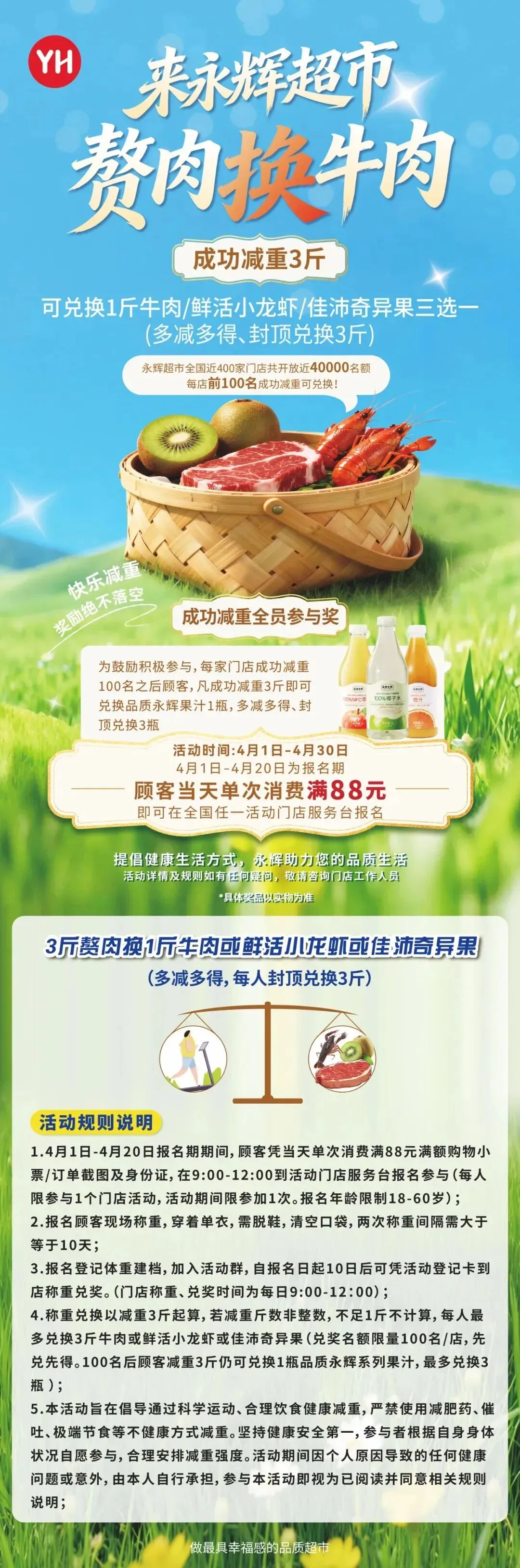算好时间:美特好名额有限先报先得,永辉报名到4月20日,称重要间隔10天。