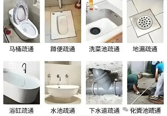 🔄 疏通服务:下水道、马桶、蹲厕、地漏、下水管、脸盆、菜盆、墩布池、坐便器、小便池、主管道。