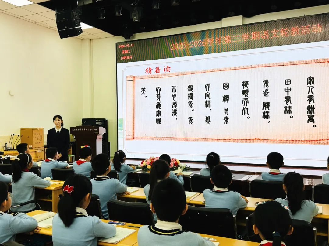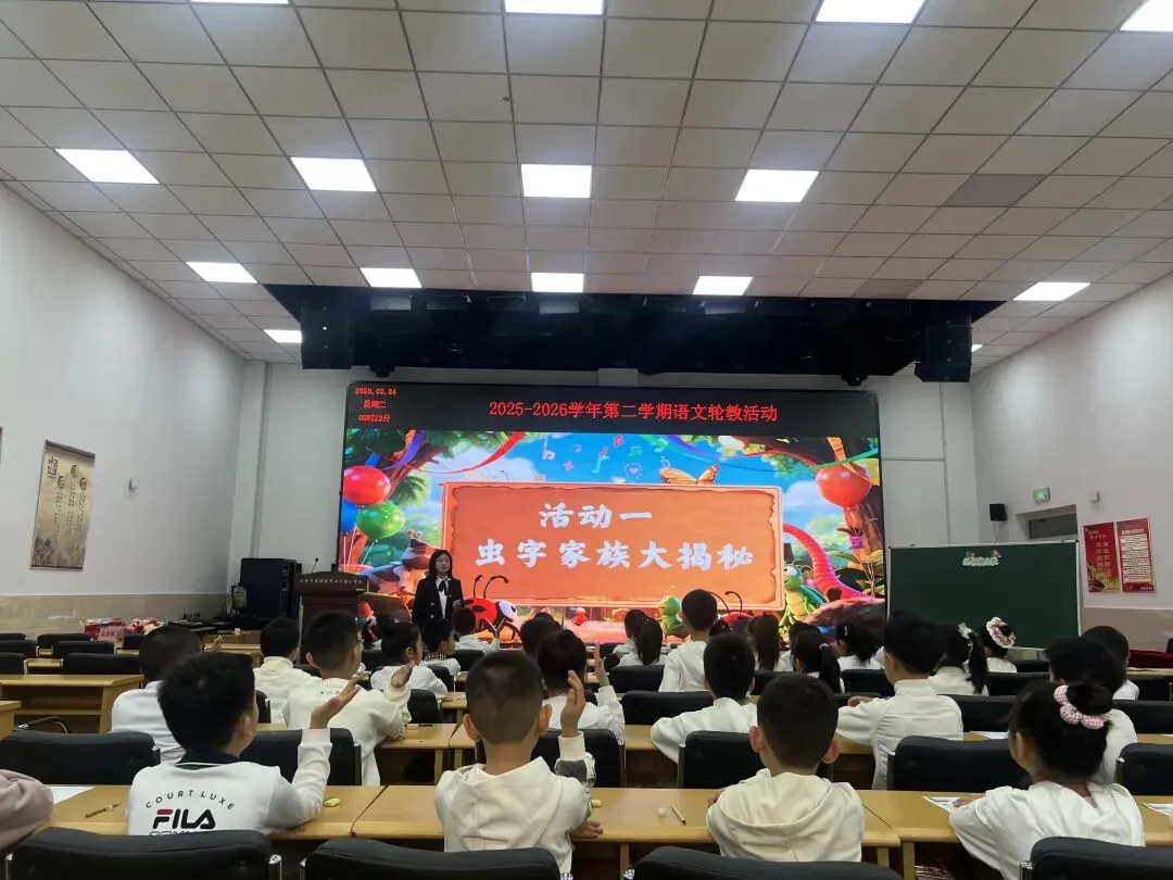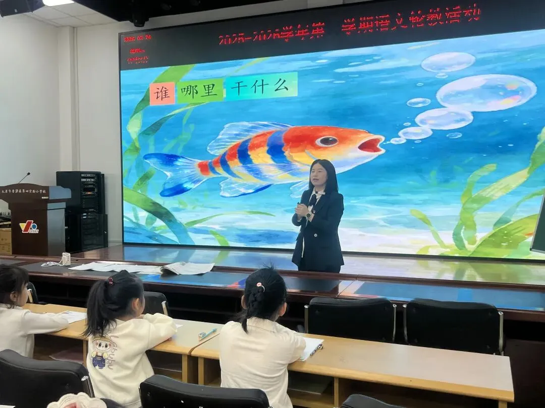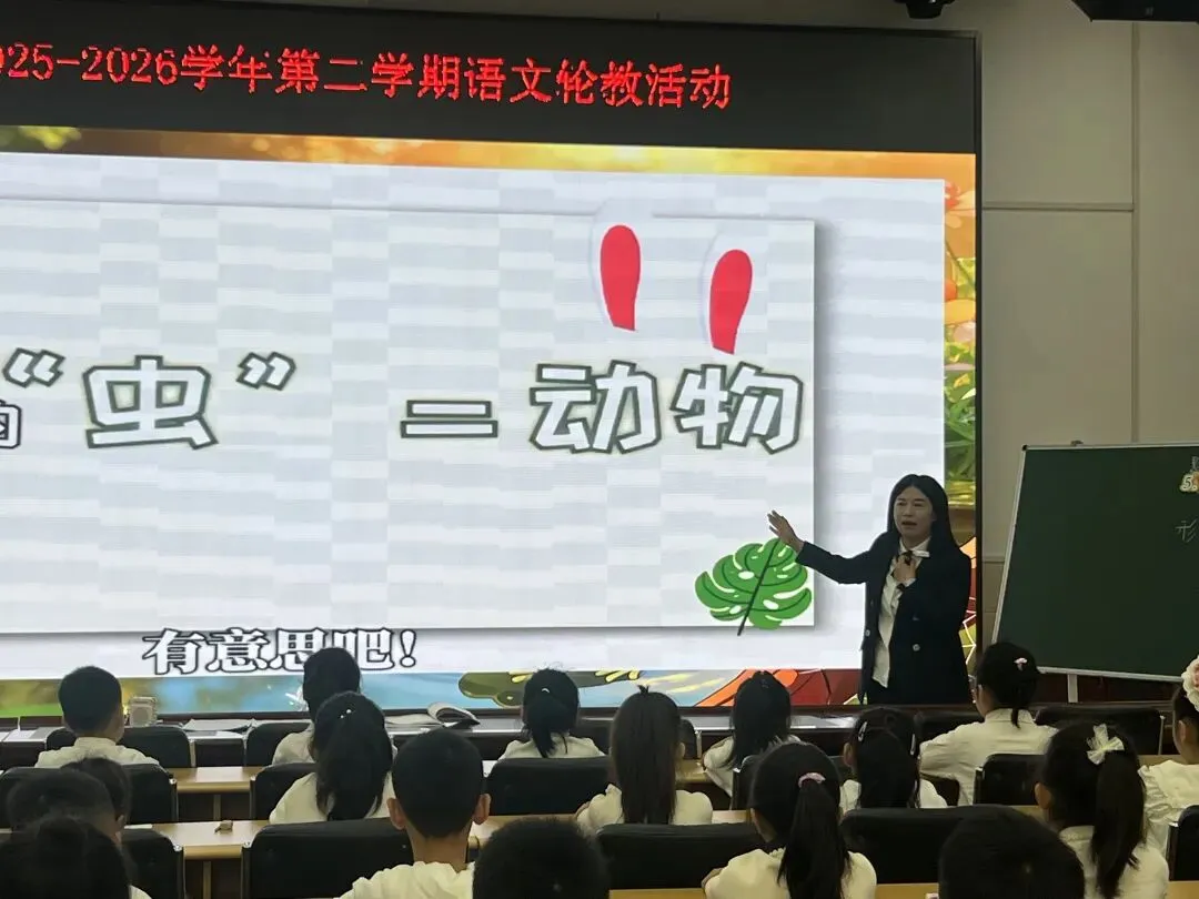 本次公开课以“森林小使者闯关”为情境,围绕识字、品读、创作三大核心目标展开,课堂氛围活泼高效。课堂上,教师先引导学生发现“虫字旁”形声字规律,通过“蛇”的辨析拓展认知,夯实识字基础;再以“谁+哪里+干什么”句式为抓手,结合视频、表演读等方式,带领学生品读动物习性,感受儿歌押ang韵的韵律美;最后创设创作情境,引导学生模仿句式创编儿歌,实现语言输出。