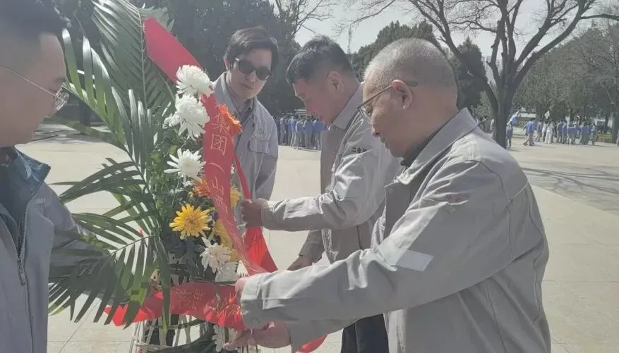 青山埋忠骨,花篮寄哀思。工作人员将承载着全体职工敬意与追思的花篮敬献在碑前,市政公司党总支书记、董事侯兵伟同志和党总支副书记、经理李忠平同志共同上前整理花篮挽联,动作庄重而肃穆。一个花圈,承载着的是对先烈的无限追思;一缕缎带,寄托着的是对英雄的崇高敬意。