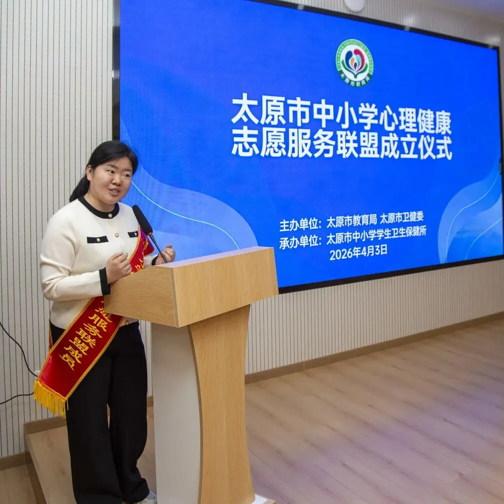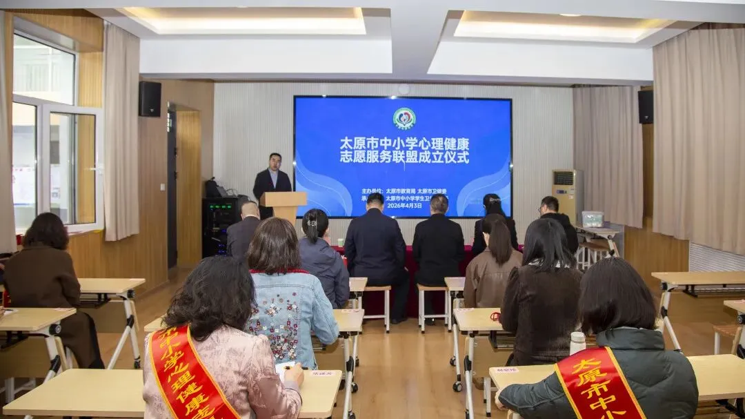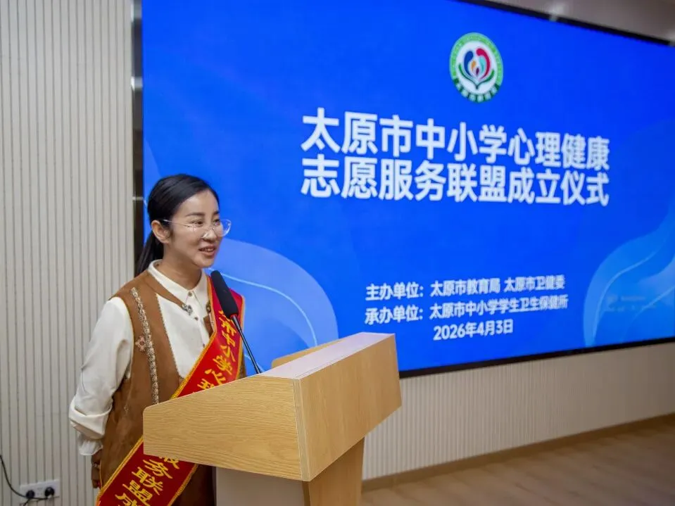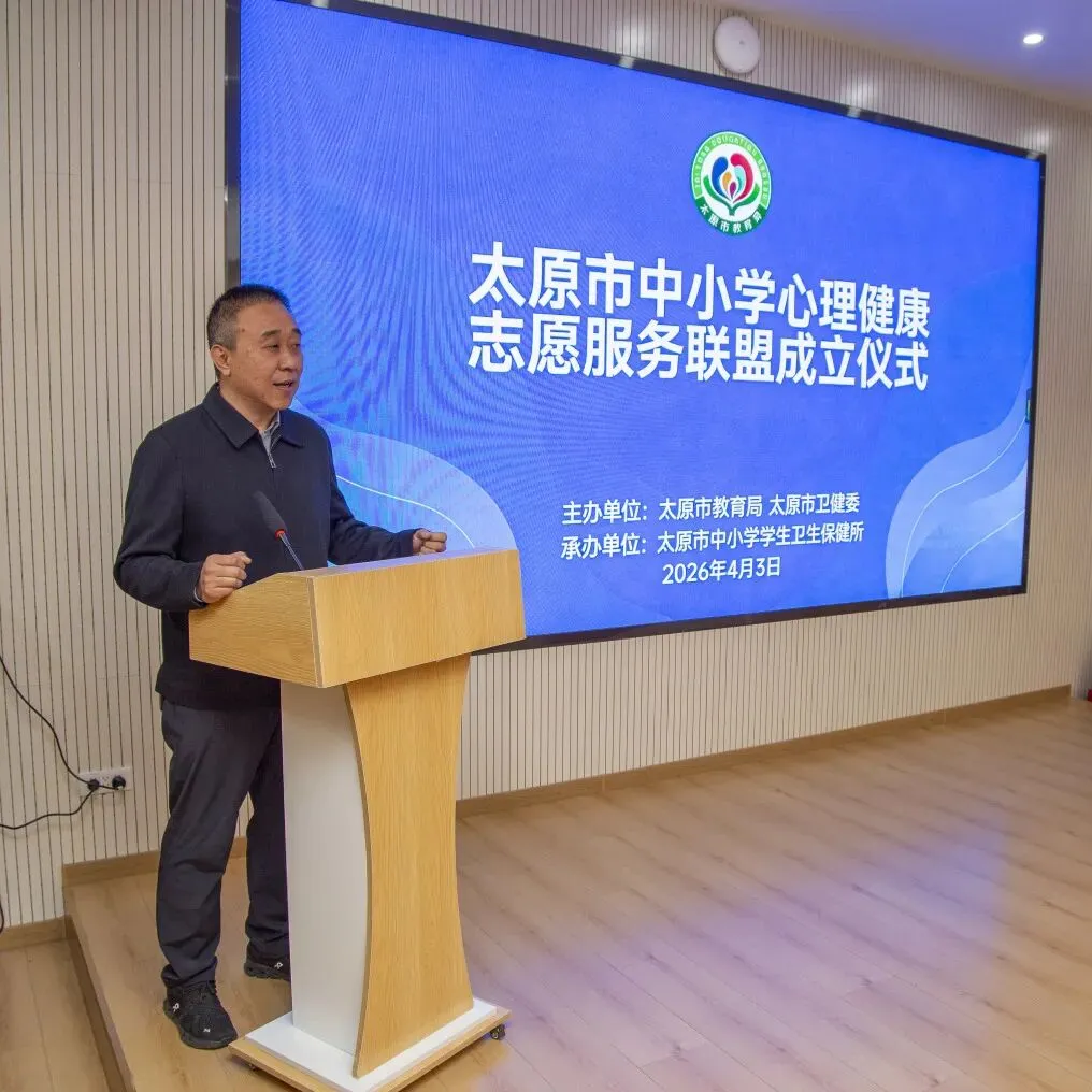 4月3日上午,太原市中小学心理健康志愿服务联盟成立仪式在市中小学学生卫生保健所举行。本次活动由市教育局、市卫健委主办,市中小学学生卫生保健所承办,旨在深入落实“健康第一”工作部署,实施学生心理健康促进行动,为学生心理健康提供专业化、常态化服务。