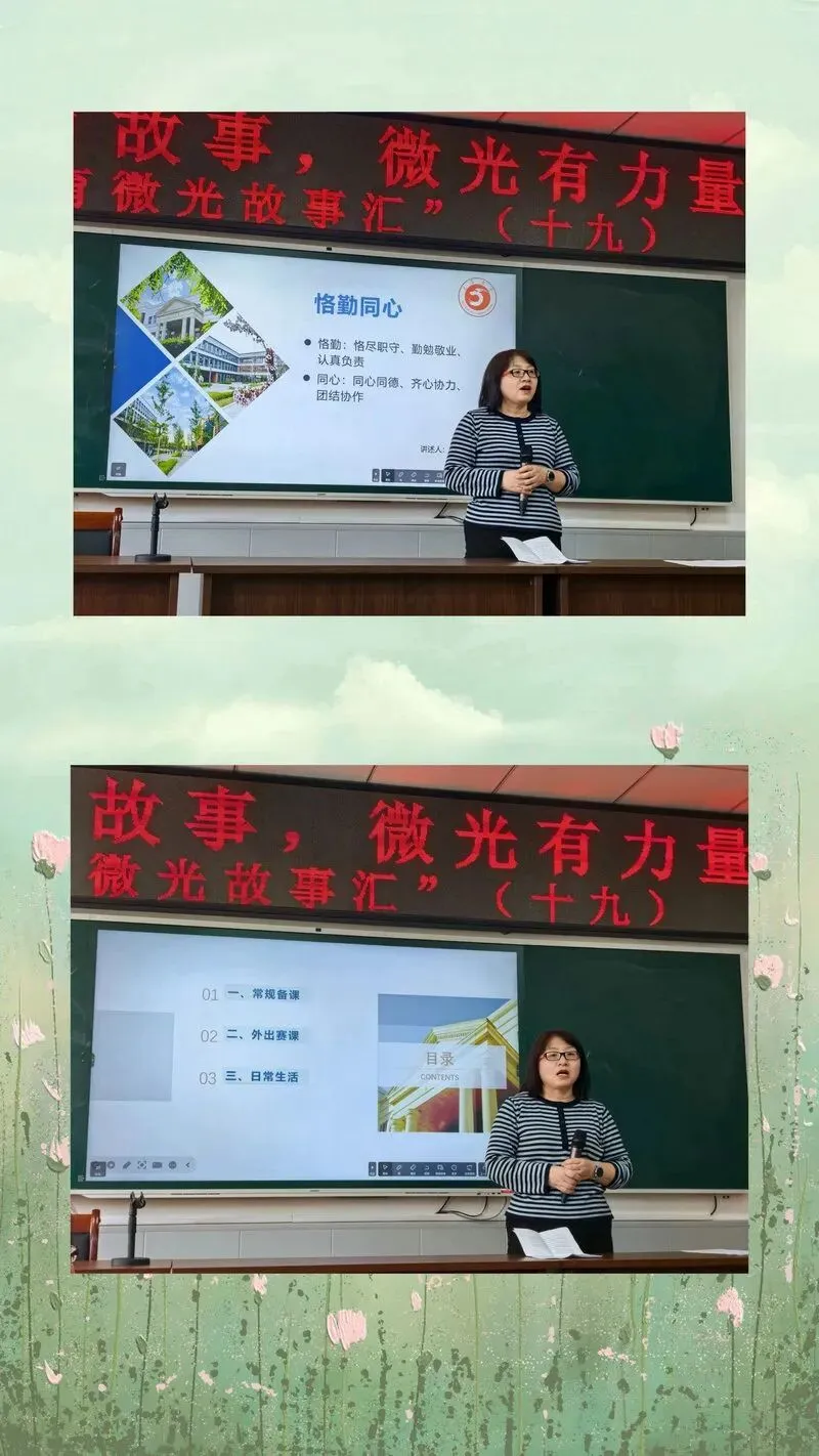 日常相守间,她守望相助,暖意长存。组内同事遇事互帮、有难同担,一次代课、一份分担、一句鼓励,都藏着最朴素的善意。身处温暖集体,韵书娟老师倍感安心与幸福。她心怀感恩,将团队给予的光热化作前行力量。未来,她将以恪勤之心笃行不怠,以同心之力携手共进,在教育路上步履坚定,微光成炬,温暖前行。
