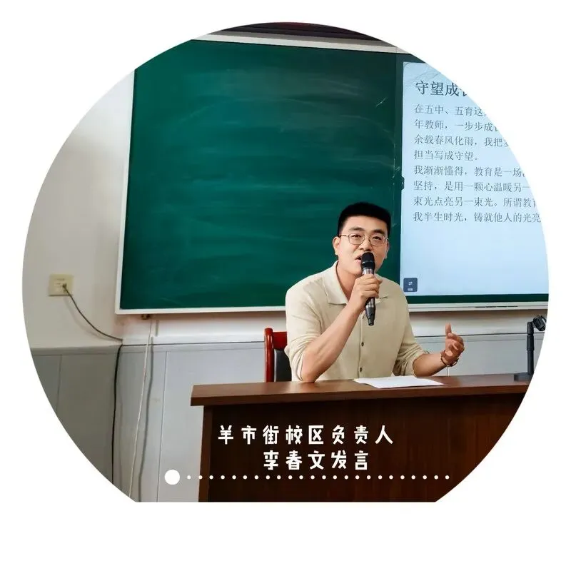 聆听完三位老师的教育故事后,羊市街校区负责人李春文老师以苏东坡的人生智慧为引,为全体教师带来一场直击心灵、温润有力的分享,让大家在故事中感悟教育初心,在豁达里读懂育人真谛。