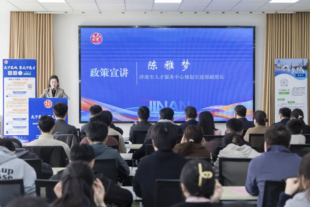 市人力资源社会保障局党组成员、副局长陈明远为“济南市招才引智大使”颁发聘书,前移引才宣传阵地,现场播放城市人才宣传片及主题曲MV,宣讲人才政策,企业代表推介人才岗位,在济校友代表现身说法,从不同角度展现济南的产业活力与人才吸引力。