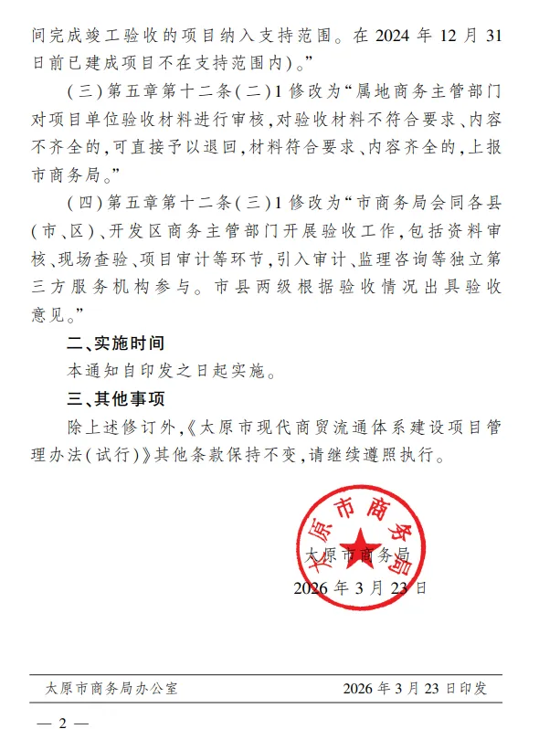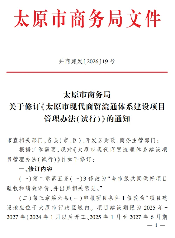 >高创提示 | 关于修订« 太原市现代商贸流通体系建设项目管理办法( 试行) » 的通知