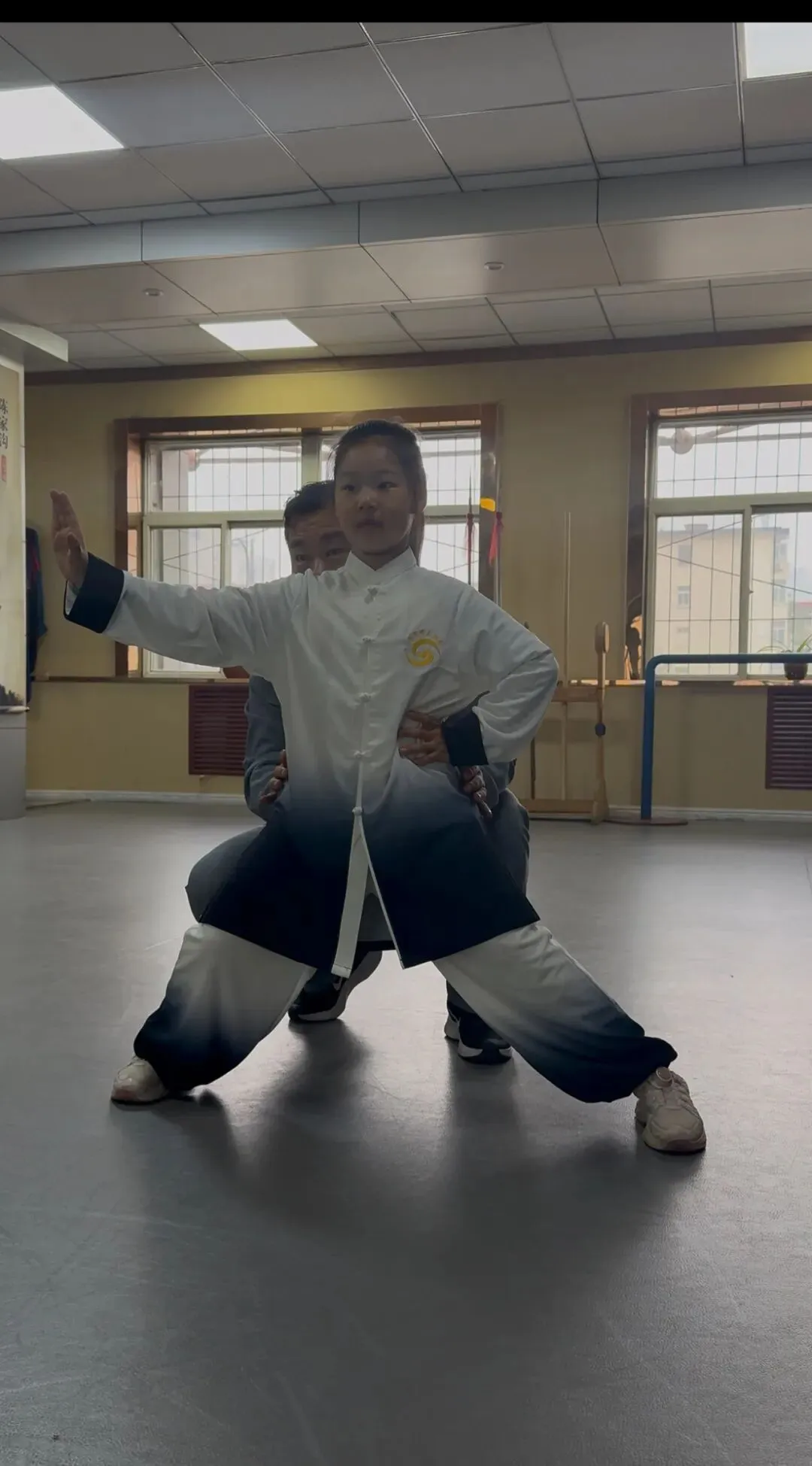 那天我路过,透过玻璃看见一个小孩正蹲着马步,脸上写满了“我坚持不住了”。旁边一个穿白色练功服的老师笑着说:“再数五个数,数完就休息。”