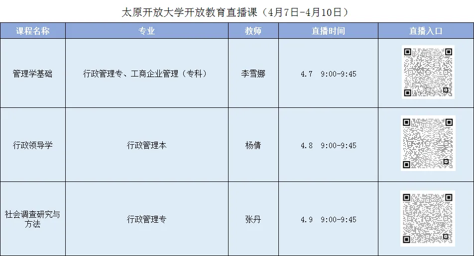 亲爱的同学们,太原开放大学2026年春季开放教育直播课@你啦!学校精心准备,为你们量身打造了涵盖不同专业领域、适应不同教育层次的丰富课程!快来加入我们,一起探索知识的奥妙,享受学习的无限乐趣吧!