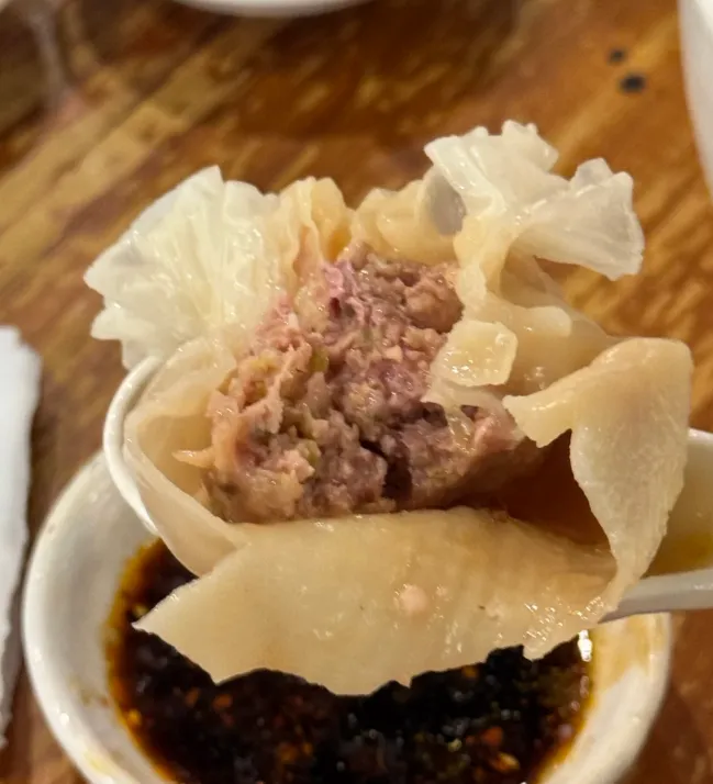 咬一口汁水就出来了,肉香浓郁还不膻。皮薄馅大,吃着特别满足。除了蒸饺,他家的晋菜和头脑也做得地道。