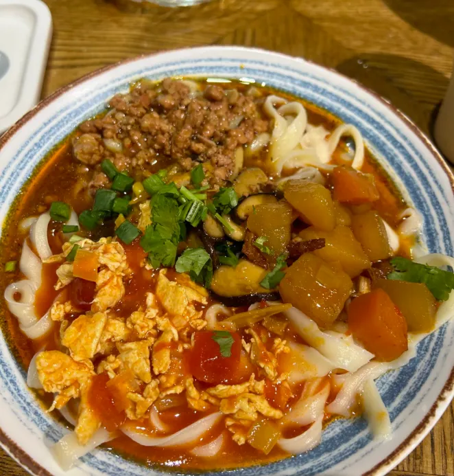 面条煮好捞出来,浇上这么一勺卤,筷子夹起来都是料。一口下去,味道特别足,一碗根本不够吃。