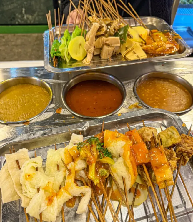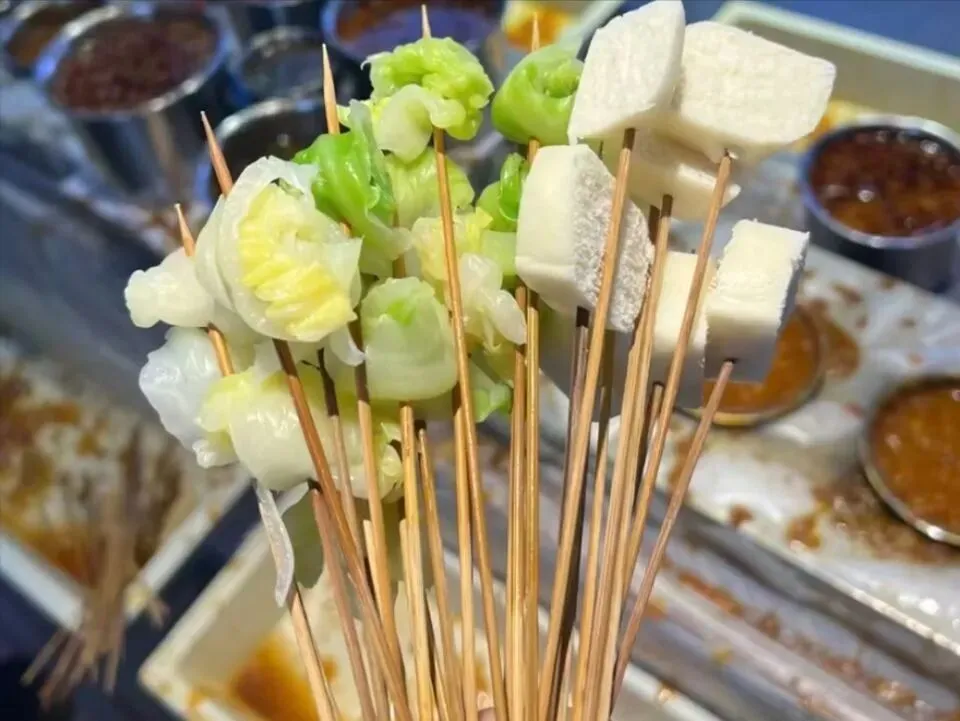这个算是太原年轻人最爱的夜宵了。大街小巷到处都是沾串摊子,胖姐家的牛牛家的,生意好得不行。