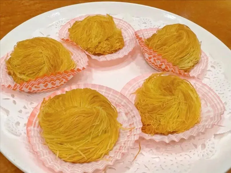 做好了的样子挺好看,一层一层的,提起来像根线,放下去像堆丝。吃着外头酥脆里头糯软,甜甜的特别香。