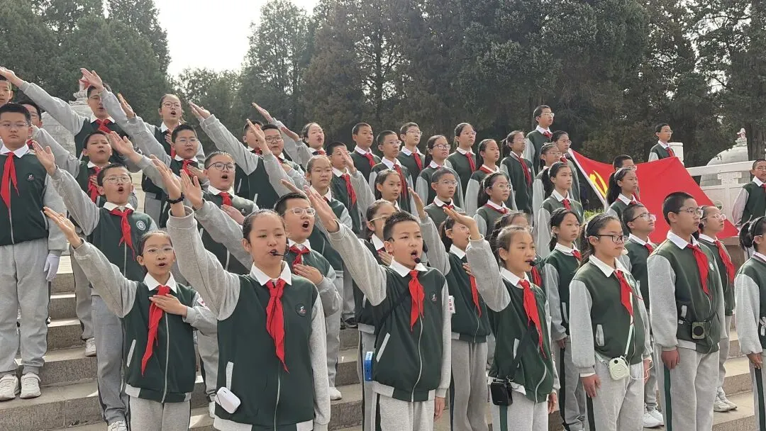 默哀毕,庄严的宣誓环节拉开帷幕。在学生代表的带领下,全体师生高举右拳,庄严宣誓。铿锵有力的誓言在陵园上空久久回荡,字字铿锵,句句坚定,彰显出全体师生铭记历史、缅怀先烈、不负韶华、矢志报国的坚定信念,更传递出传承英烈精神、勇担时代使命的决心。