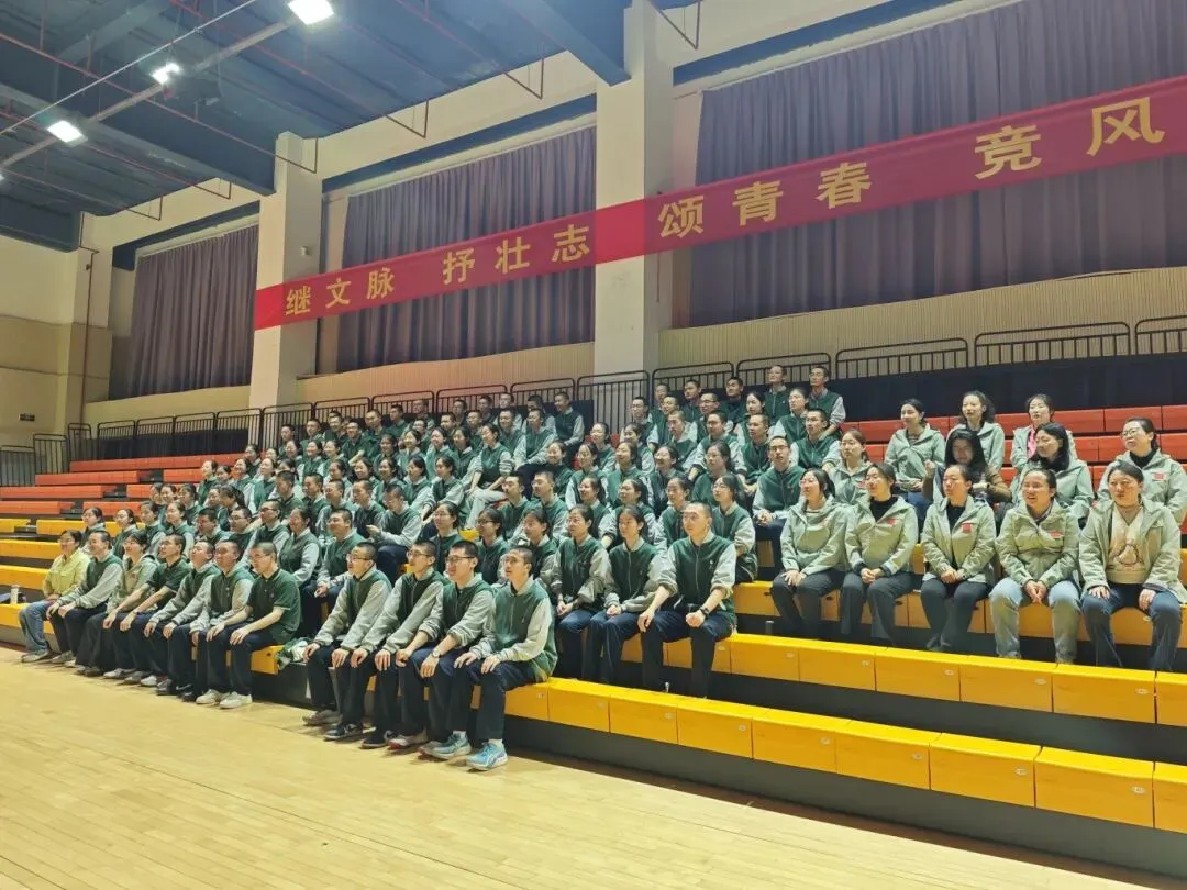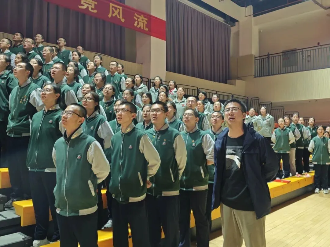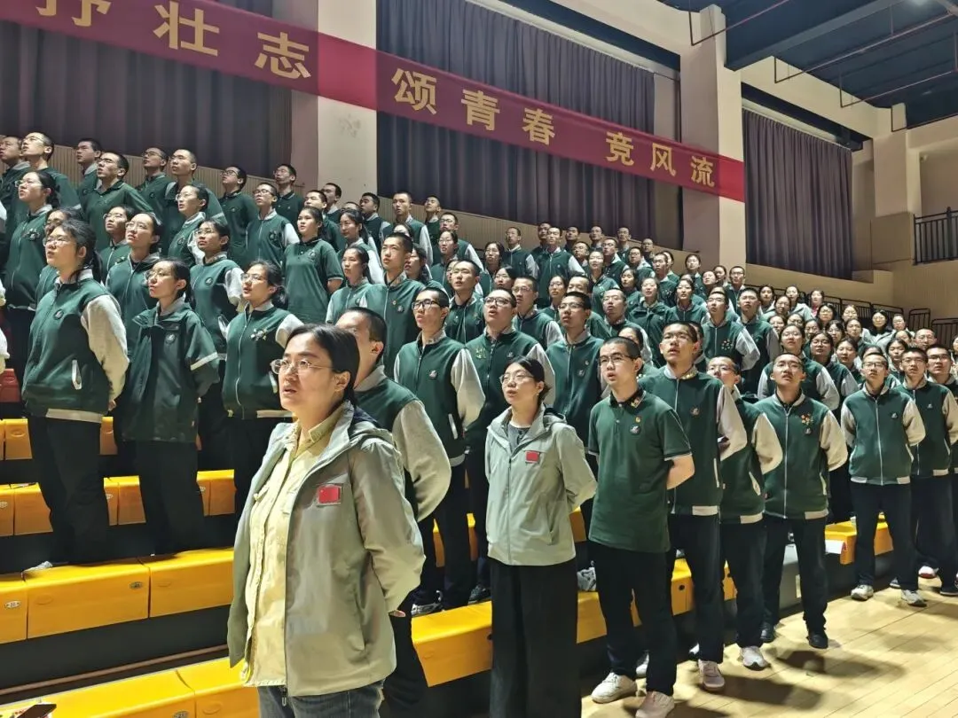 最后,全体师生齐唱班歌《驭风歌》:“少年自有他的敢,管他千道关,也要迎风踏着浪……”嘹亮歌声响彻礼堂,唱出无畏挑战的豪情。