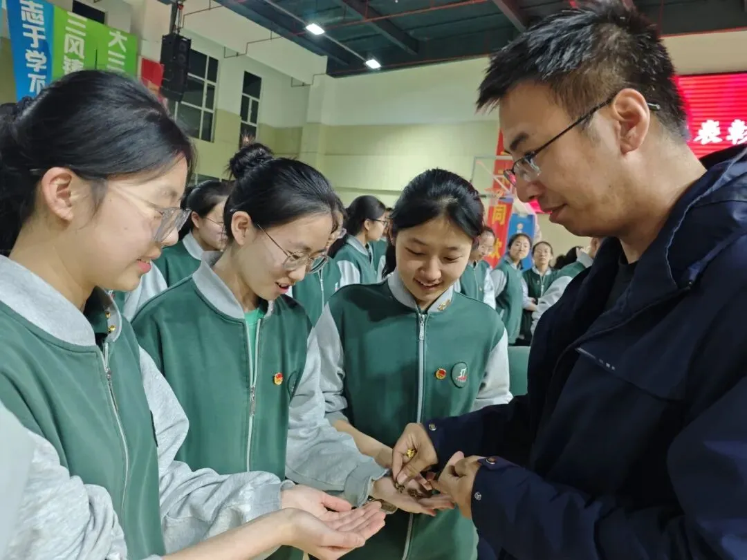 教师代表张春然、韩国晋、韩晓春、张玲四位老师回顾了同学们从晨光熹微到星光满天的拼搏身影,细数了“点点法”“符号法”“回头看”“过关法”等科学备考的点滴实践。老师们动情地说:“你们从来都不是一个人在战斗,我们始终相伴,静待金榜题名。”