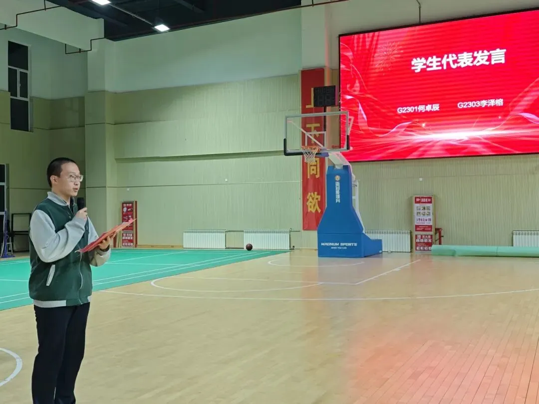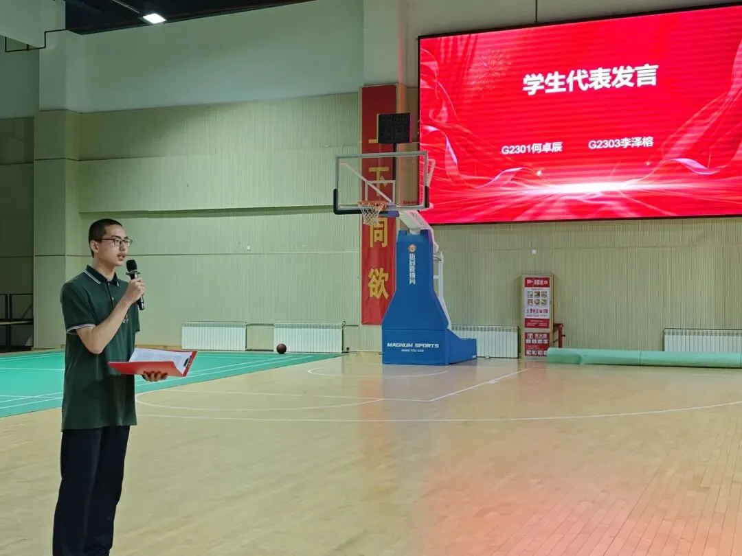 学生代表何卓辰分享逐梦心得,讲述在复盘与坚持中突破自我的真实经历。李泽榕则以一句刻在心间的话点燃全场:“除了胜利,我们无路可走。”他坦言,这句话激励着自己全力以赴,必将伴随全体同学迎战二模、决胜高考。