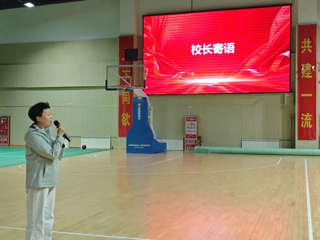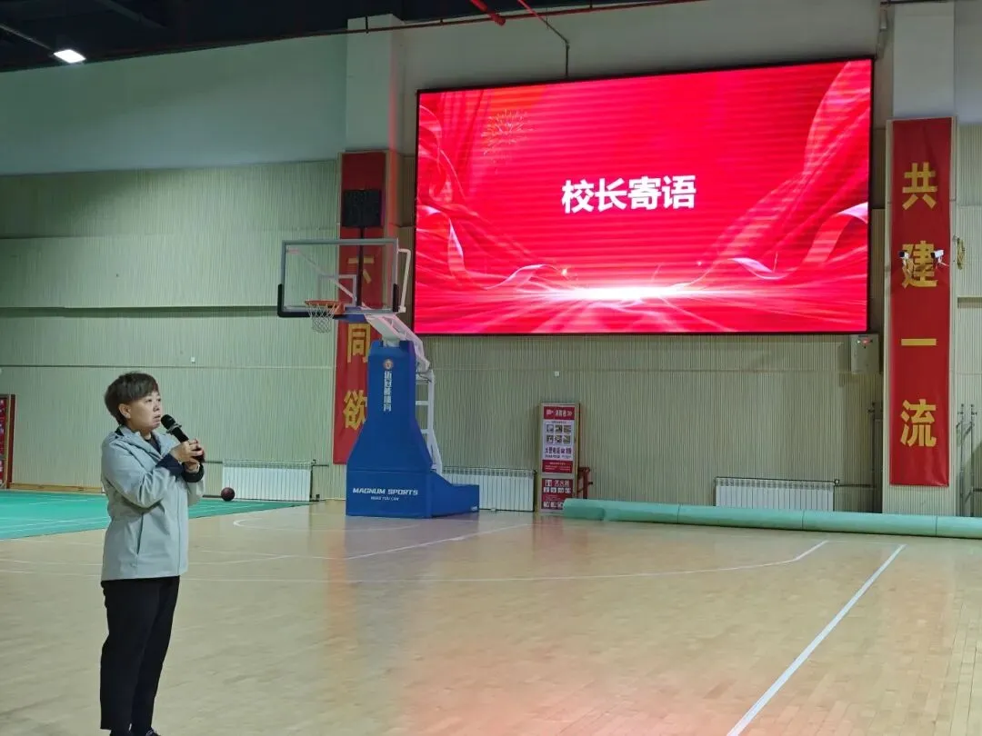 李倩校长送出两个关键词——“清醒”与“奔跑”。她强调,高三人的奔跑化作了每一张“人人卷”、每一本“错题宝”,藏在每天铆劲过关的努力中;要热爱老师、相信学校、互助学习,形成合力。