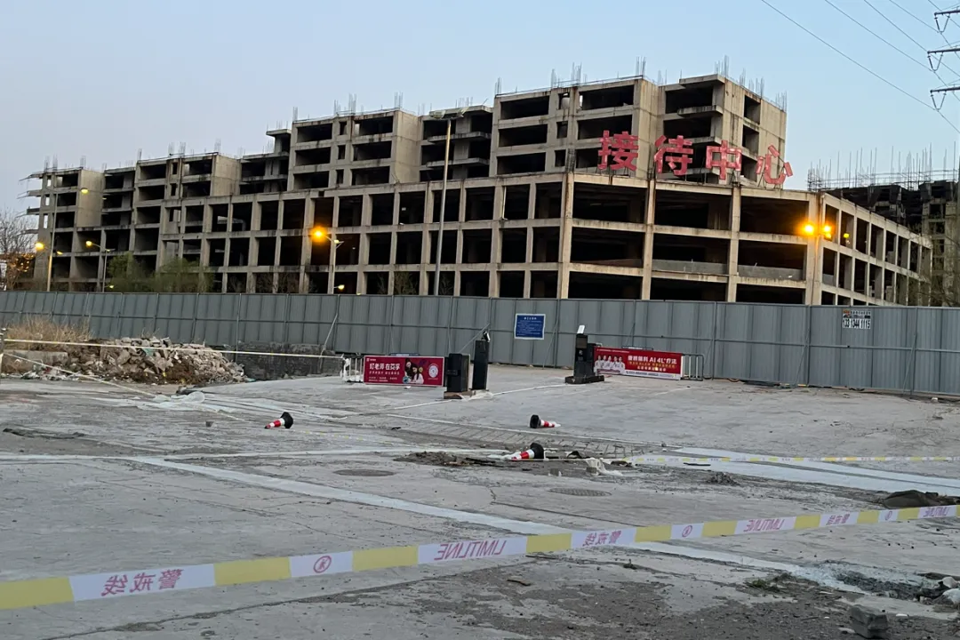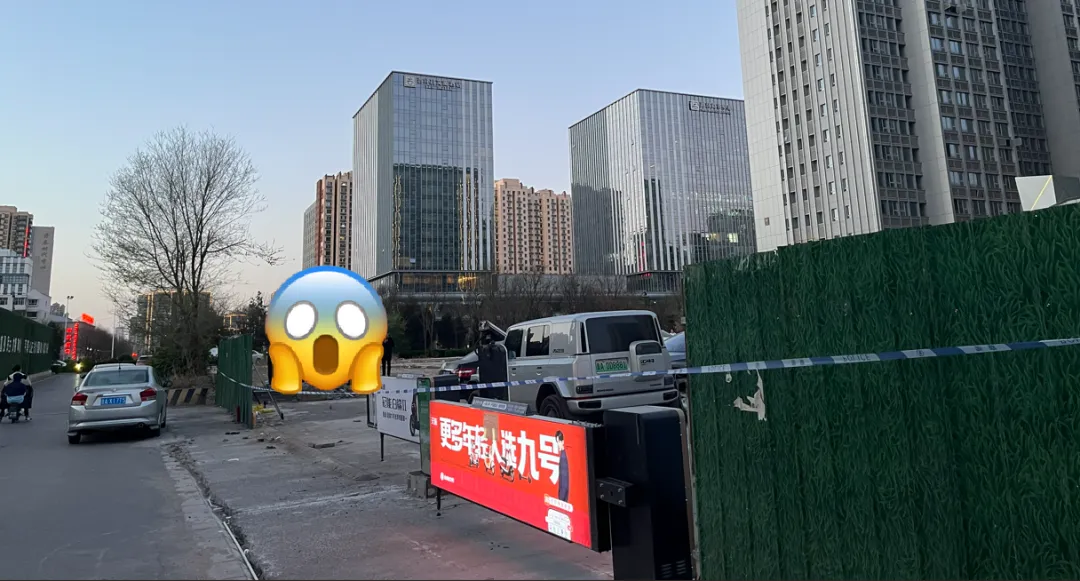 这里的施工项目到底是什么,不得而知,停车道闸设置有车牌识别系统,难道要临时改造成收费的停车场?