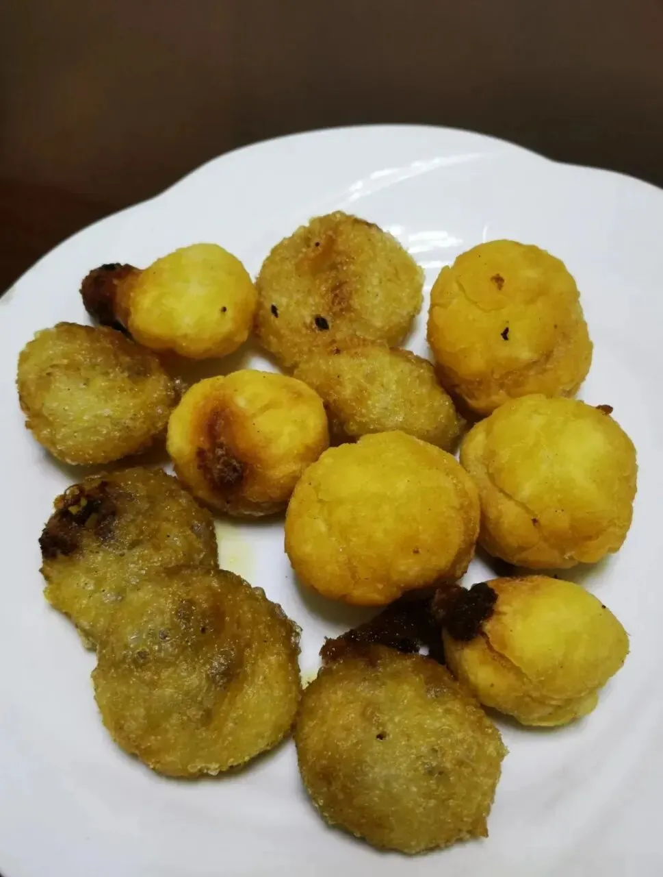 不过呢,他家的特殊之处是炸元宵和炸糕是无限量畅吃的,吃完你可以和老板娘说——我还要!这倒是弥补了他家量不大的问题。我比较了一下,还是炸元宵好吃一些,油糕里面的馅料太少了。