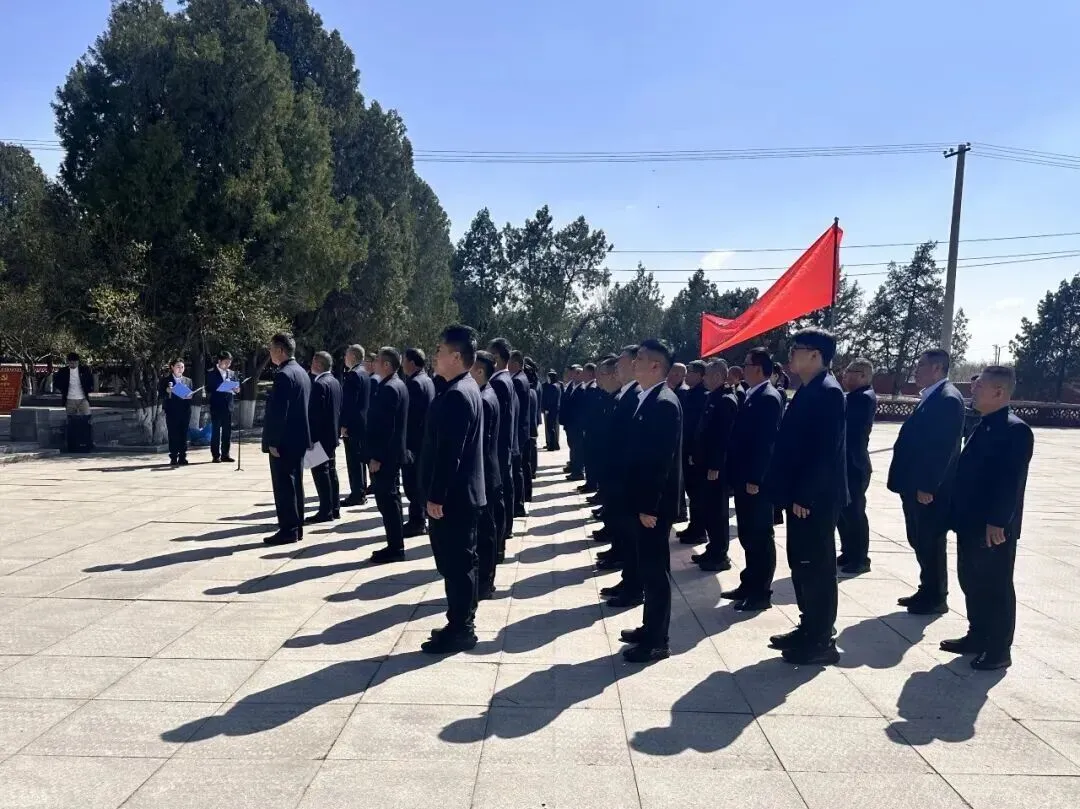 活动现场,全体党员干部整齐列队,神情凝重。伴随着激昂雄壮的《中华人民共和国国歌》,全体人员齐声高唱,饱含着对祖国的热爱与对先烈的缅怀。在庄严的烈士墓碑前,大家怀着沉重的心情向革命烈士默哀致敬。机关支部党员代表王健、任丽丽饱含深情朗诵了诗歌《清明祭先烈》,诉说着对革命先烈的深切缅怀与崇高敬仰。随后,保安礼兵向烈士敬献花篮,集团党委书记、董事长梁治国上前整理花篮缎带,党员同志们依次敬献鲜花,表达了对革命烈士的崇高敬意。最后,梁治国同志带领全体党员面向鲜红的党旗,高举右拳,庄严宣誓,重温入党誓词,铿锵有力的誓言诠释着大家对入党初心和使命担当的承诺和信心。