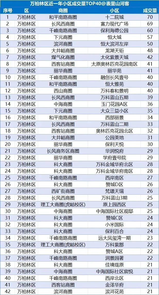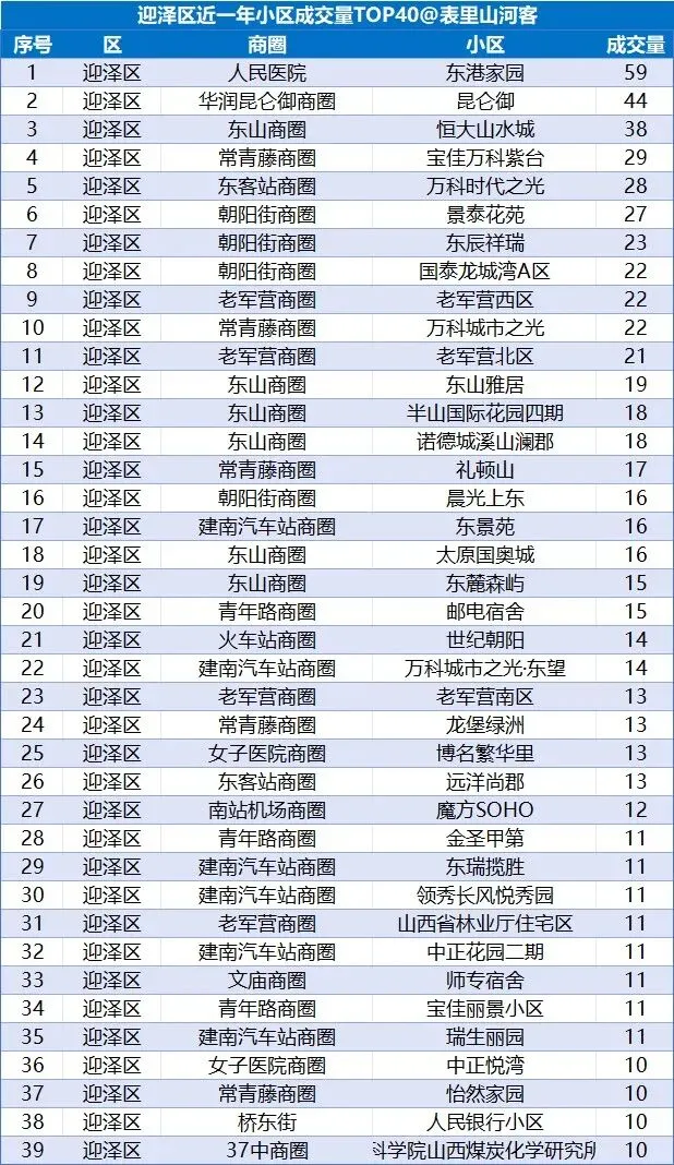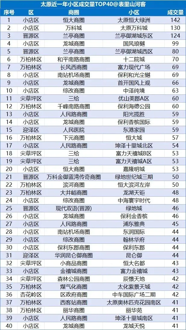 我们这一篇,就为大家更新一下,太原现在哪些小区成交量比较大。