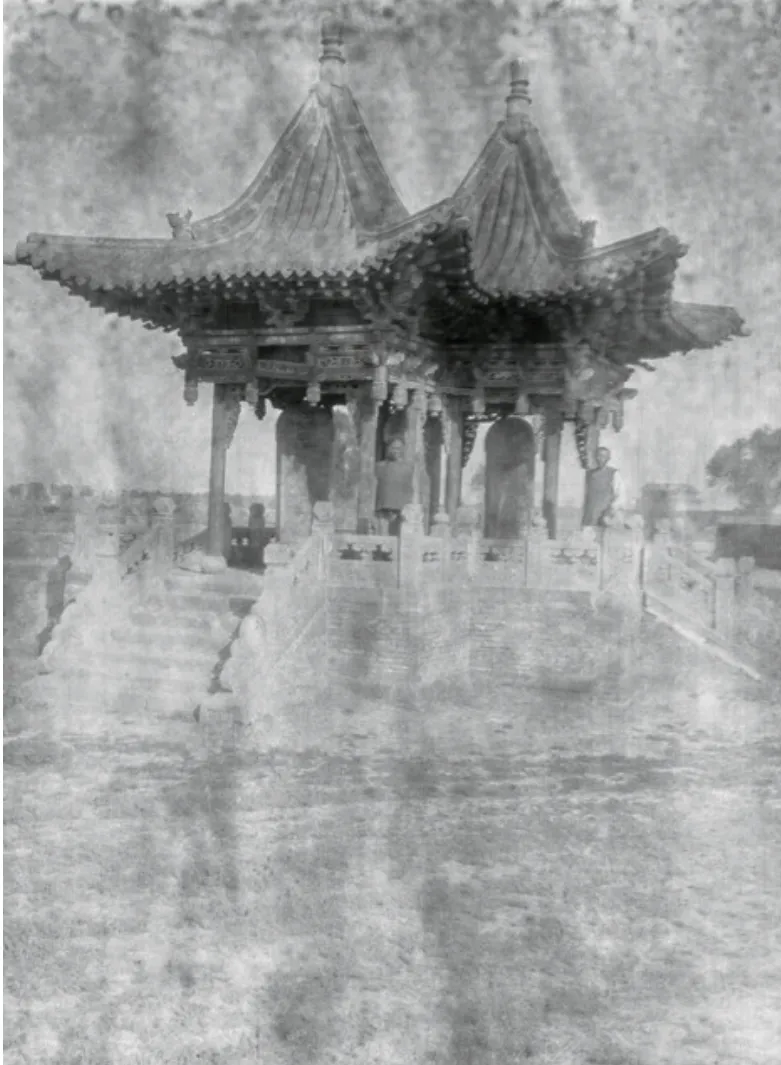 在马达汉中国行末期在五台山面见达赖喇嘛前,他在太原雇了个导游,把当时太原城内的各名胜之地都玩了一圈,在整理他在华相册的山西部分时,我注意到了这张当时来山西旅游的老外都会拍的地方,那就是太原庚子教案纪念碑亭(图2)。法国著名汉学家沙畹(Edouard Chavannes)在稍早的1907年也拍摄过这座亭子,其在西方人看来可谓是太原最重要的一个纪念地了。