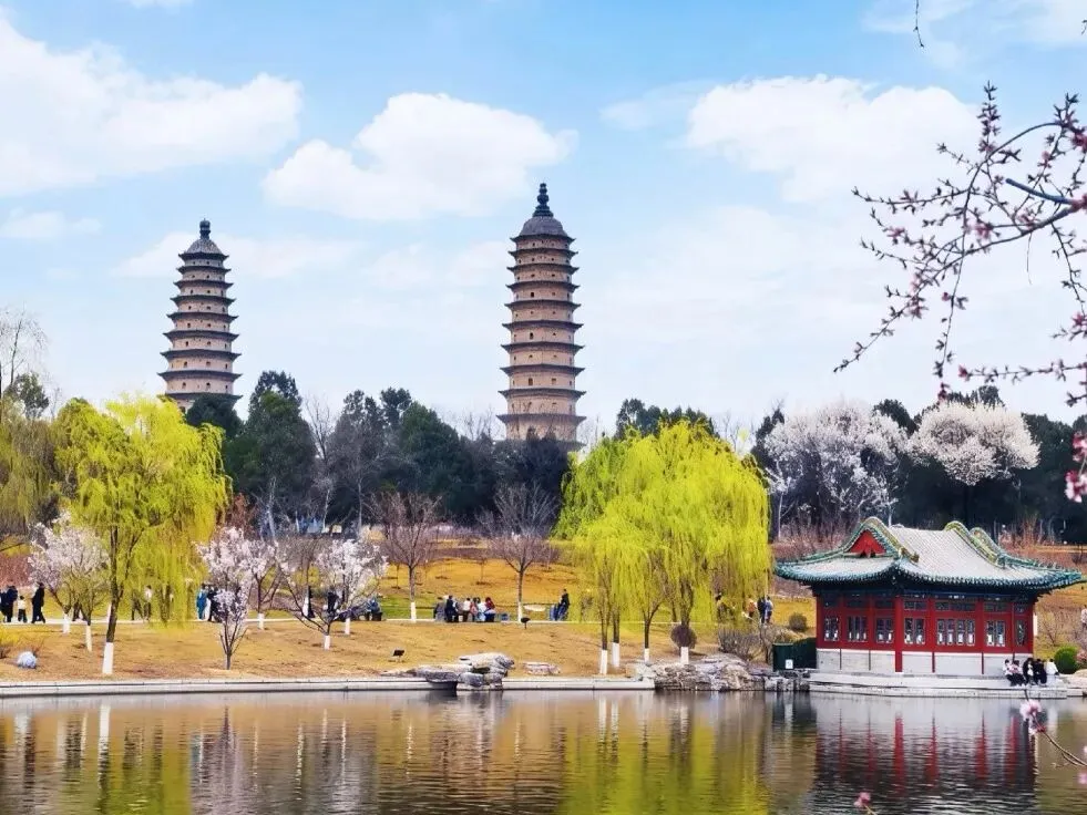 春日里的双塔公园,风光旖旎,更兼缅怀情思。早樱、玉兰、榆叶梅将园区装点得明媚动人,连翘花瀑鎏金溢彩,与凌霄双塔同框入镜,勾勒出龙城独有的春日天际线。高君宇纪念广场内松柏苍翠、庄严肃穆,可驻足缅怀革命英烈,在盎然春意中传承红色精神,让清明的追思与感恩,于繁花美景间更显厚重与温度。