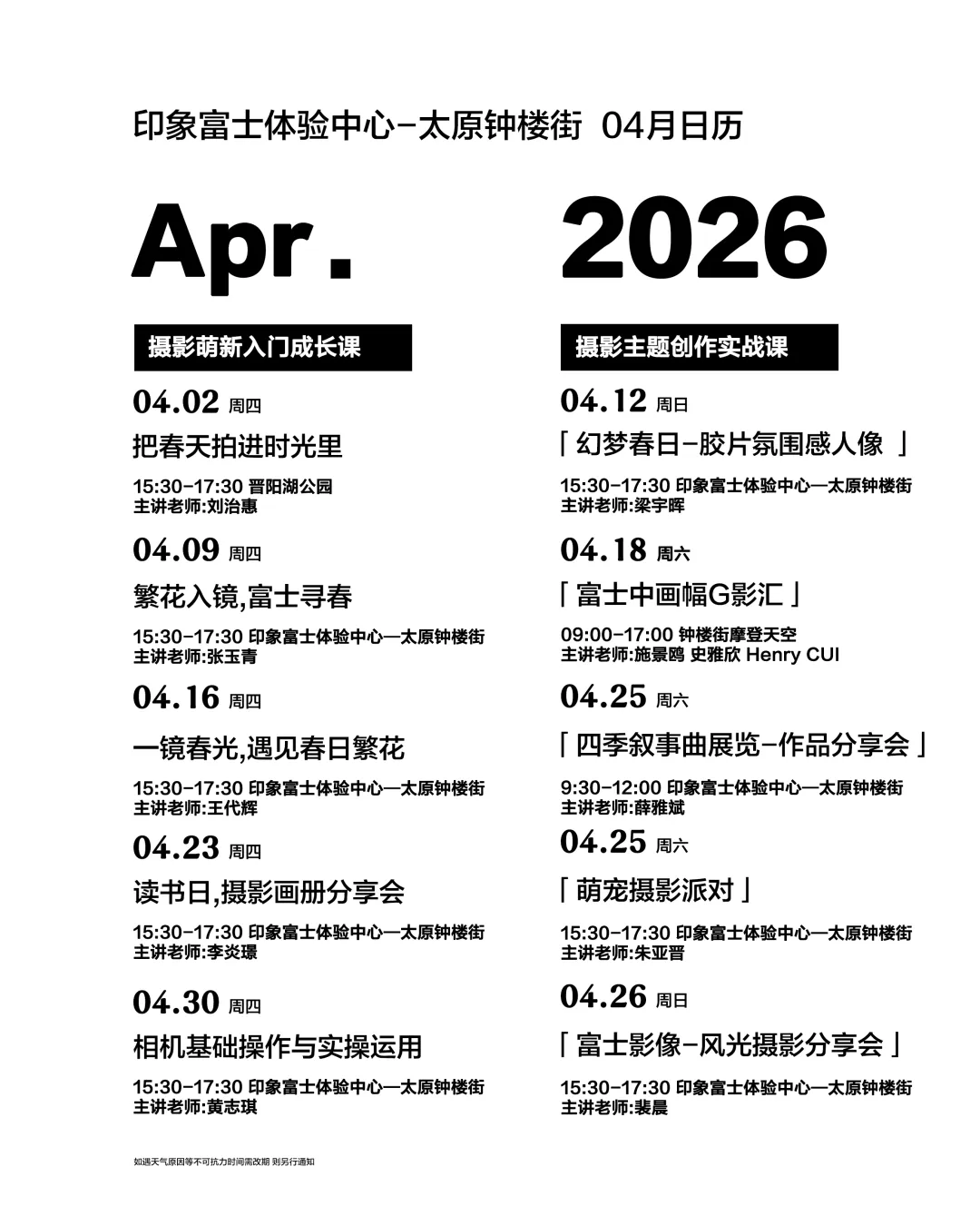 你可以零距离上手体验富士GFX中画幅系列器材,亲身感受中画幅相机带来的超高画质、细腻质感与出色色彩表现,用镜头捕捉光影层次,定格世间万象之美,沉浸式体验专业摄影器材的硬核实力。活动时间:2026年4月18日(周六)分上午/下午两场上午场09:00-12:25|下午场13:00-17:00交叉口西80米MODERN SKY LAB(摩登天空)报名方式:小刺猬:18434542593,薛老师:13934146327