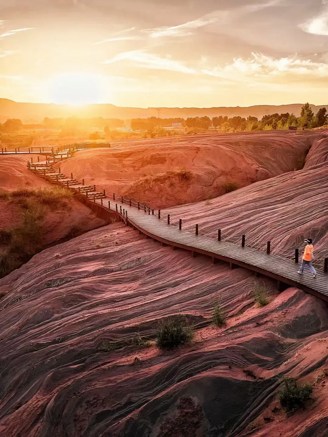 早餐后前往陕北波浪谷,波浪谷位于距陕西省靖边县,靖边波浪谷岩石叫红砂岩,学术上被称为"砒砂岩",成于古生代二叠纪和中生代三叠纪、侏罗纪、白垩纪之间。这是地球历史中地质最活跃、生物最繁茂、动物最庞大的时代。游玩水上丹霞,1号景区,一线天,赤列丹霞.
