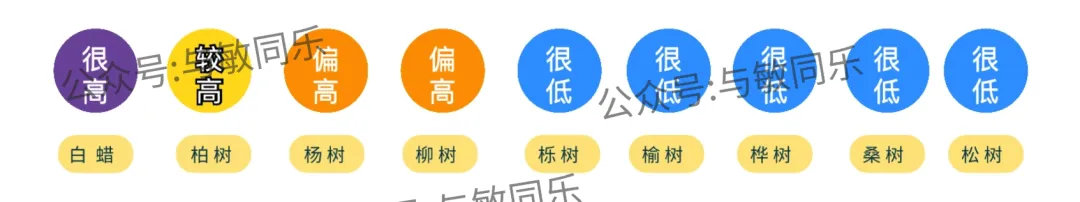 气传致敏花粉种类包括:白蜡、柏树、杨树、柳树、栎树、榆树、桦树、桑树、松树等;