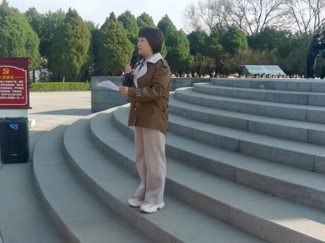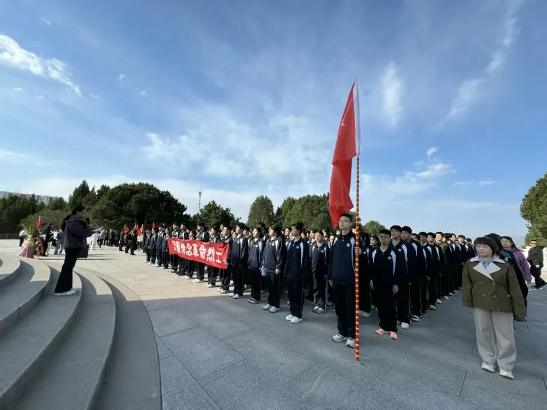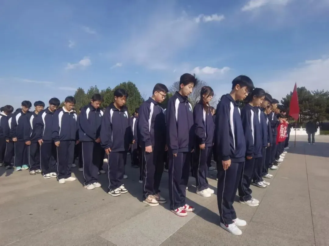 抵达纪念馆后,身着整洁校服的同学们,整齐列队于烈士纪念碑前,神情凝重,心怀崇敬。学生代表缓步上前,敬献花圈,整理缎带,将对先烈的追思与敬仰化作庄重的仪式。全体师生垂首默哀,向为太原解放事业英勇献身的革命先烈致以最崇高的敬意。