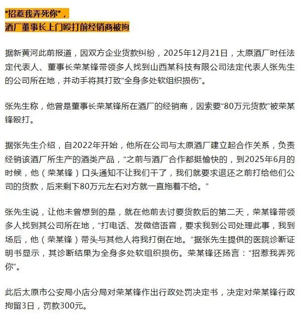 “招惹我弄死你”!太原一董事长殴打他人被停职,最新进展