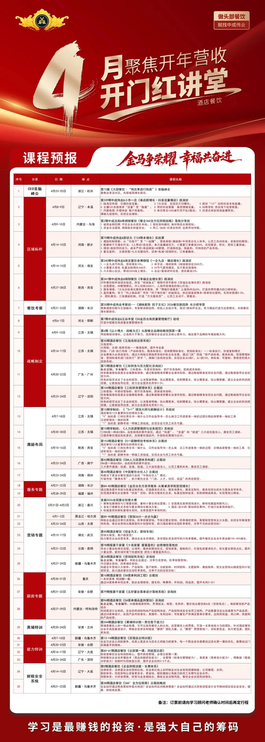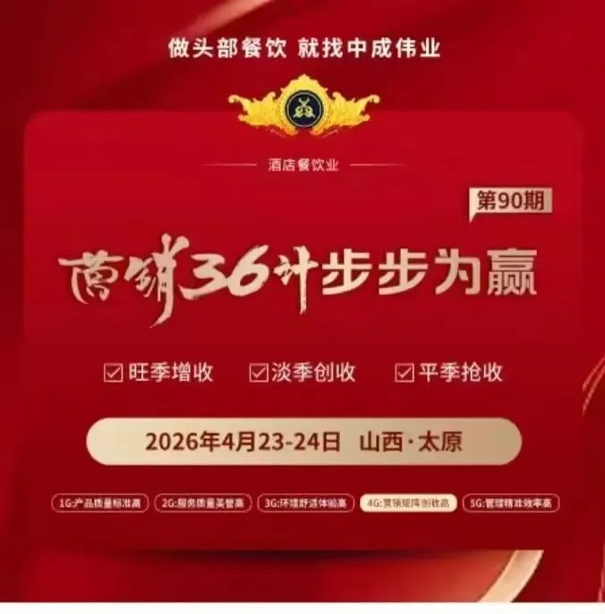 【太原站】4月23-24日中成伟业第90期酒店餐饮《营销36计一步步为赢》公开课