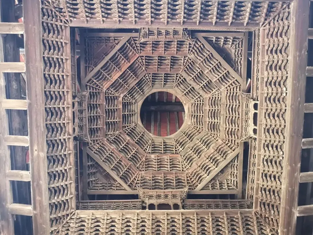 · 献殿藻井:一定要抬头看!那八卦藻井完全由木块和木条榫卯拼接,无钉无铆,像一件巨大的工艺品悬于头顶,被称为“天宫楼阁”。
