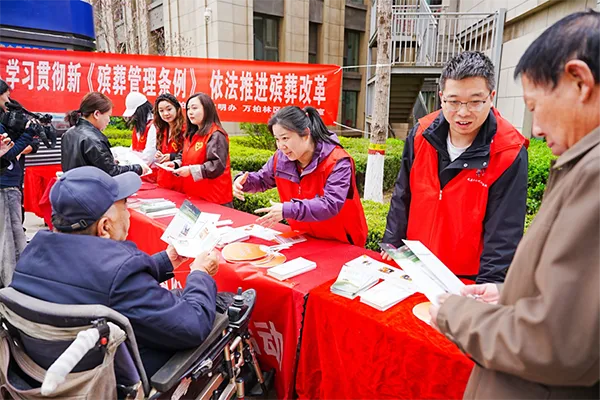 宣讲结束后,移风易俗政策宣传服务同步开展。区民政局、新时代文明实践服务中心、侨联的工作人员及志愿者在指定区域设立宣传咨询点,通过发放《文明祭扫倡议书》《传播新思想 引领新风尚》《殡葬惠民政策手册》等资料,赠送弘扬文明新风小礼品等方式,向过往群众面对面宣讲政策知识,引导广大群众从自身做起、从家庭做起,主动践行文明祭扫新理念。