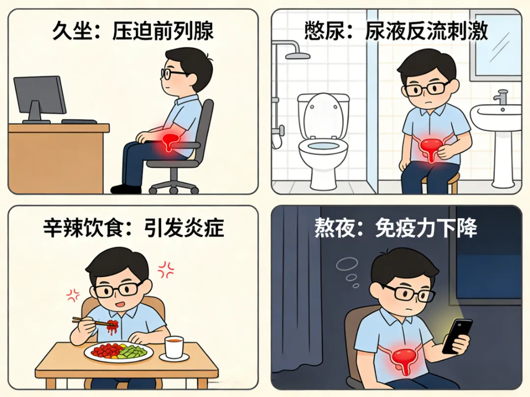 1️⃣ 久坐杀手:办公室族/司机每天坐>8小时,前列腺持续充血