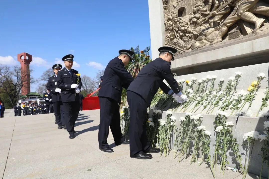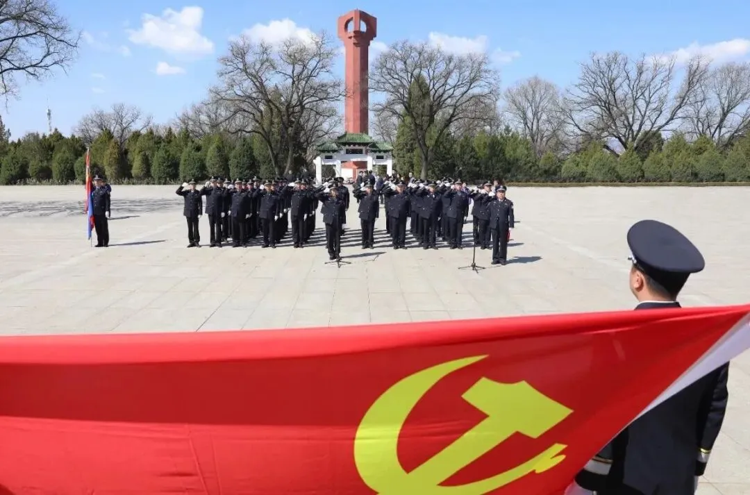 春风拂过松柏,哀思萦绕陵园,秦皇岛铁路公安处前往秦皇岛市山海关烈士陵园,全体民警警容严整、列队肃立,向革命烈士敬献花篮、脱帽默哀。公安处党委书记、处长石二忠整理挽联并致辞,带领民警重温先烈救国图存的光辉历史;政委武辉章带领大家面向党旗重温入党誓词,誓言回荡在青山绿水间。民警们瞻仰纪念碑、参观烈士纪念馆,各基层所队同步开展活动,立志继承先烈遗志,踔厉奋发、勇毅前行,为铁路公安高质量发展贡献力量。