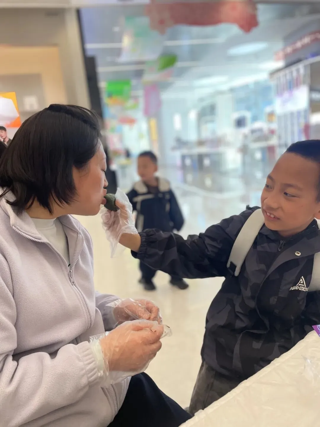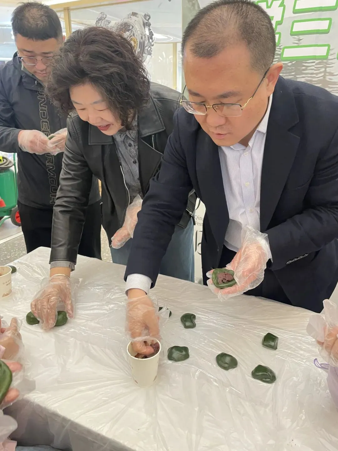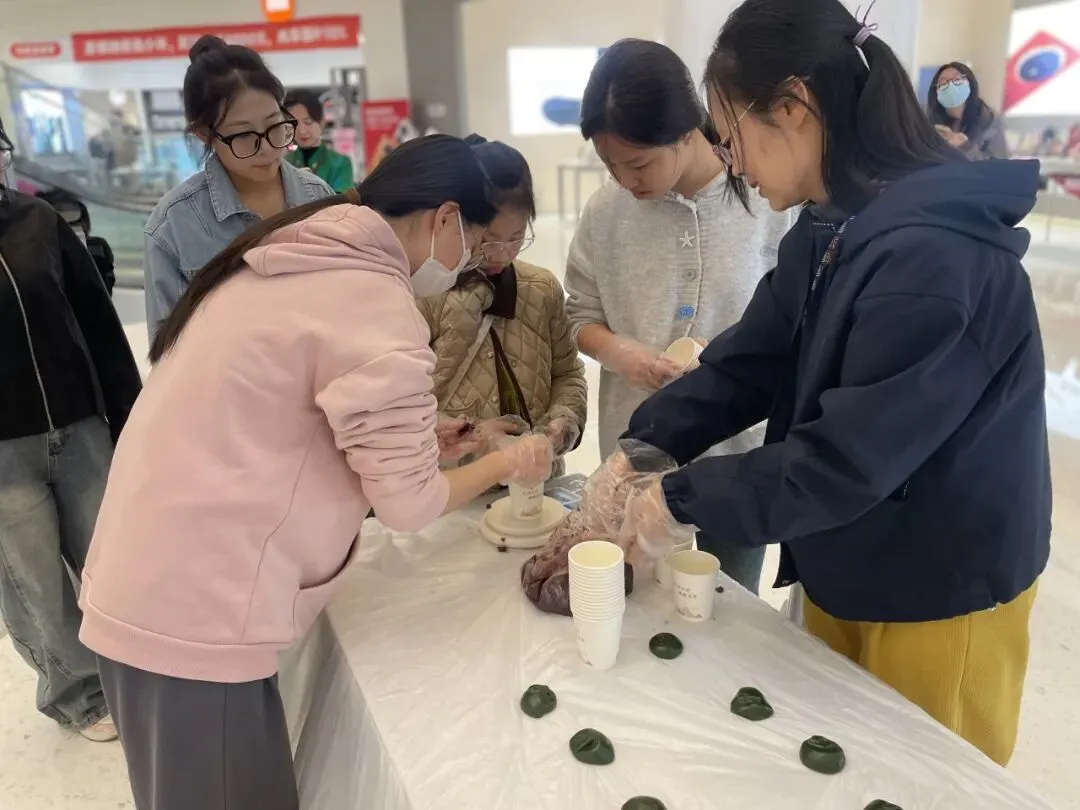 随后,手工制作青团环节将现场氛围推向高潮。青团作为清明时节的传统美食,承载着春日的气息与团圆的寓意。活动现场,大家戴上一次性手套,揉面团、包馅料,亲手制作软糯香甜的青团。孩子们认真学习、耐心制作,完成后纷纷将热气腾腾的青团递到长辈手中,喂给长辈品尝,小小的举动满是温情。长辈们脸上洋溢着欣慰的笑容,现场欢声笑语不断,代际之间的温情在互动中悄然传递,让“孝亲敬老”不再是一句口号,而是化作触手可及的温暖陪伴,也让《寻梦环游记》里“家人至上”的理念,在亲手传递的美食中落地生根。