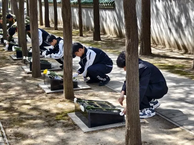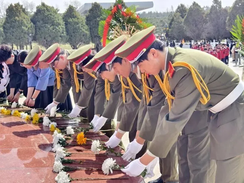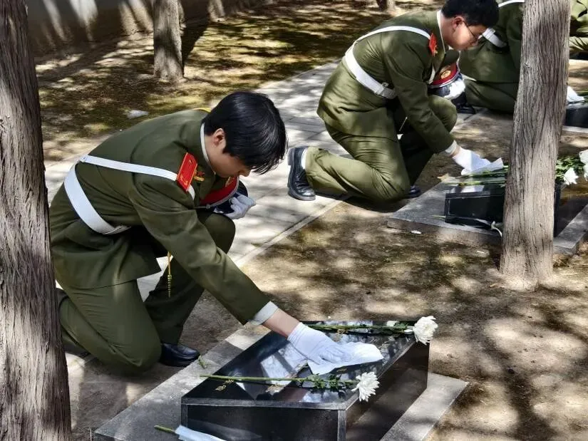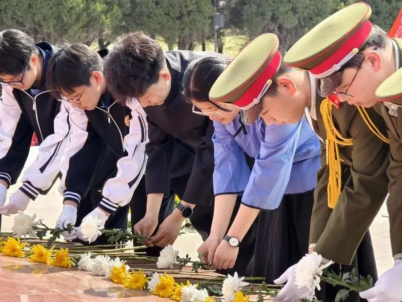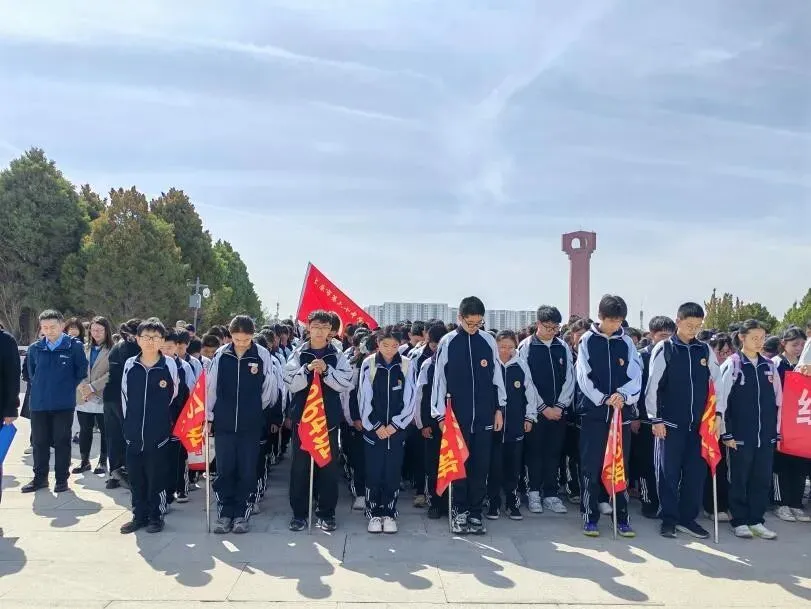 第二站,师生们来到了太原市牛驼寨革命烈士陵园。在这里,师生们庄严举行了缅怀先烈的祭扫仪式。