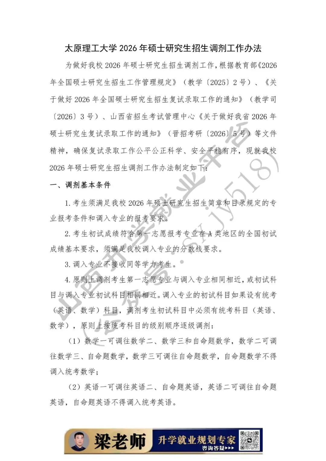 太原理工大学2026年硕士研究生招生调剂工作办法