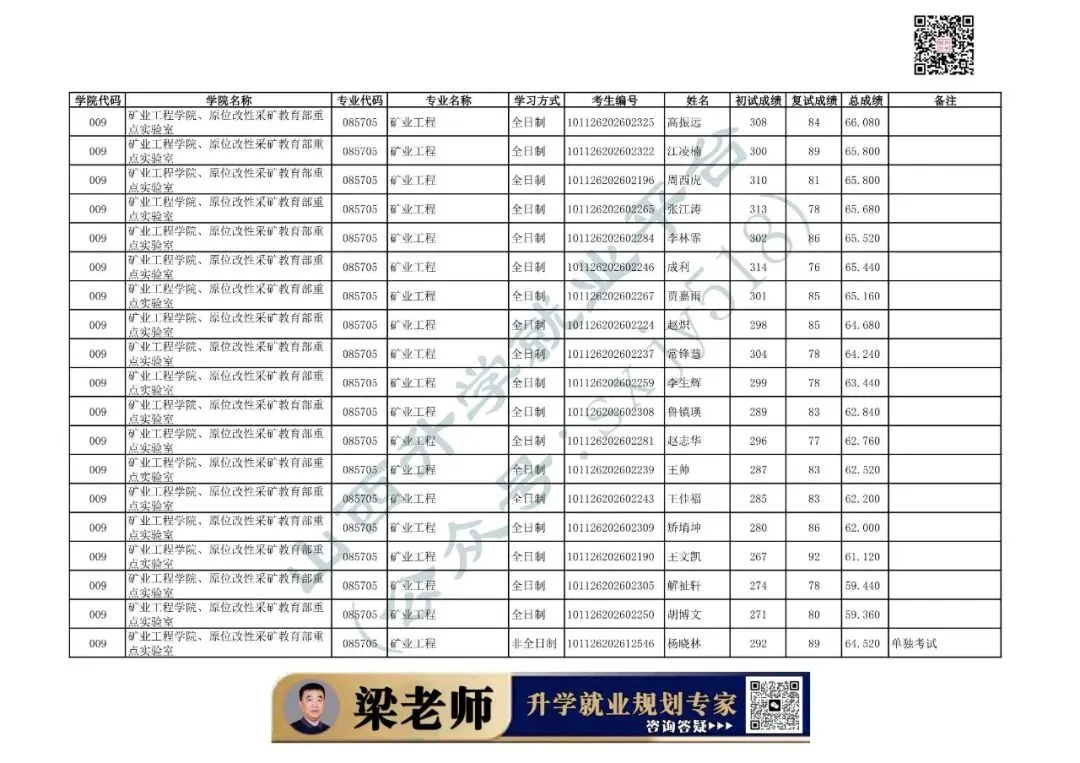 009 | 矿业工程学院、原位改性采矿教育部重点实验室 | 085705 | 矿业工程 | 非全日制 | 101126202699909 | 刘杰 |