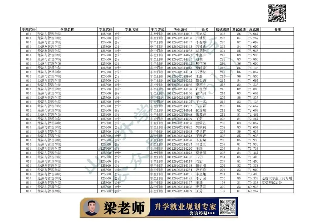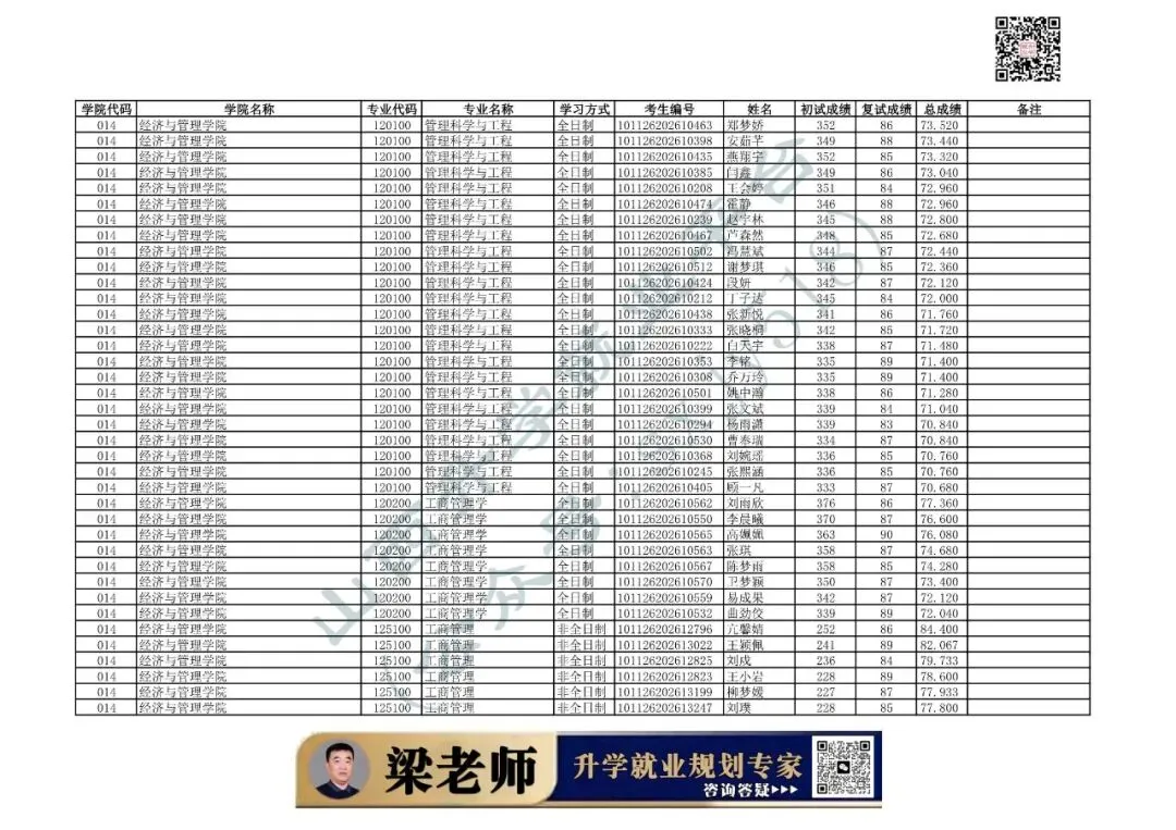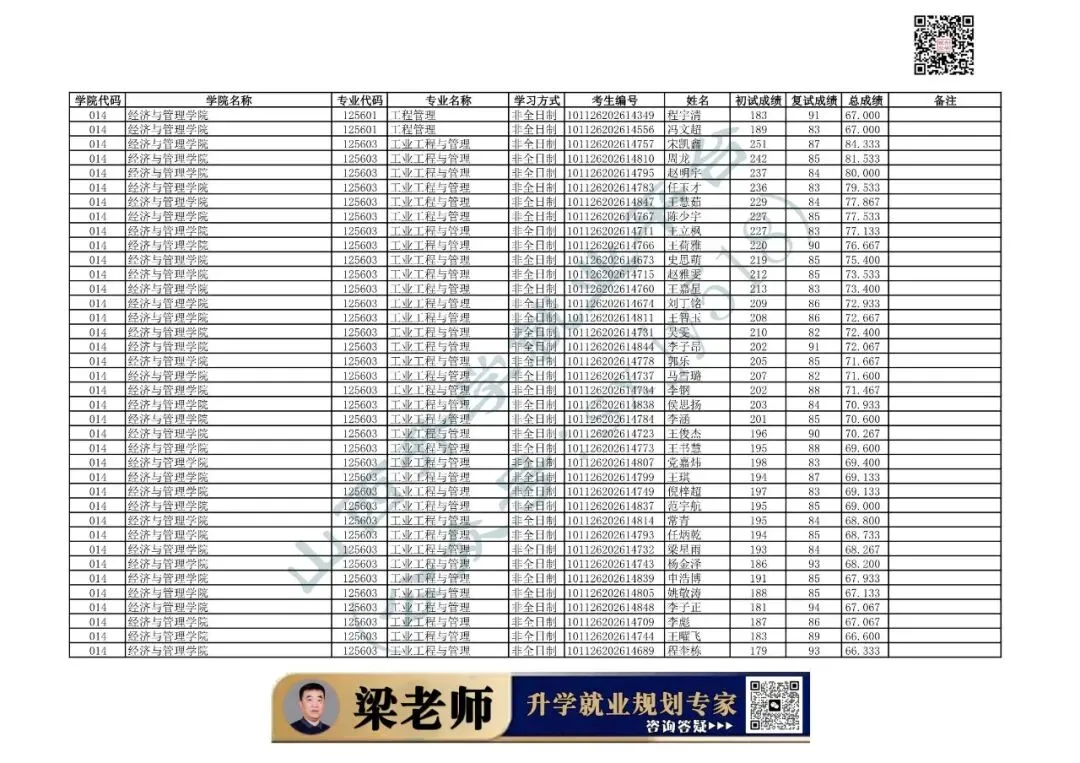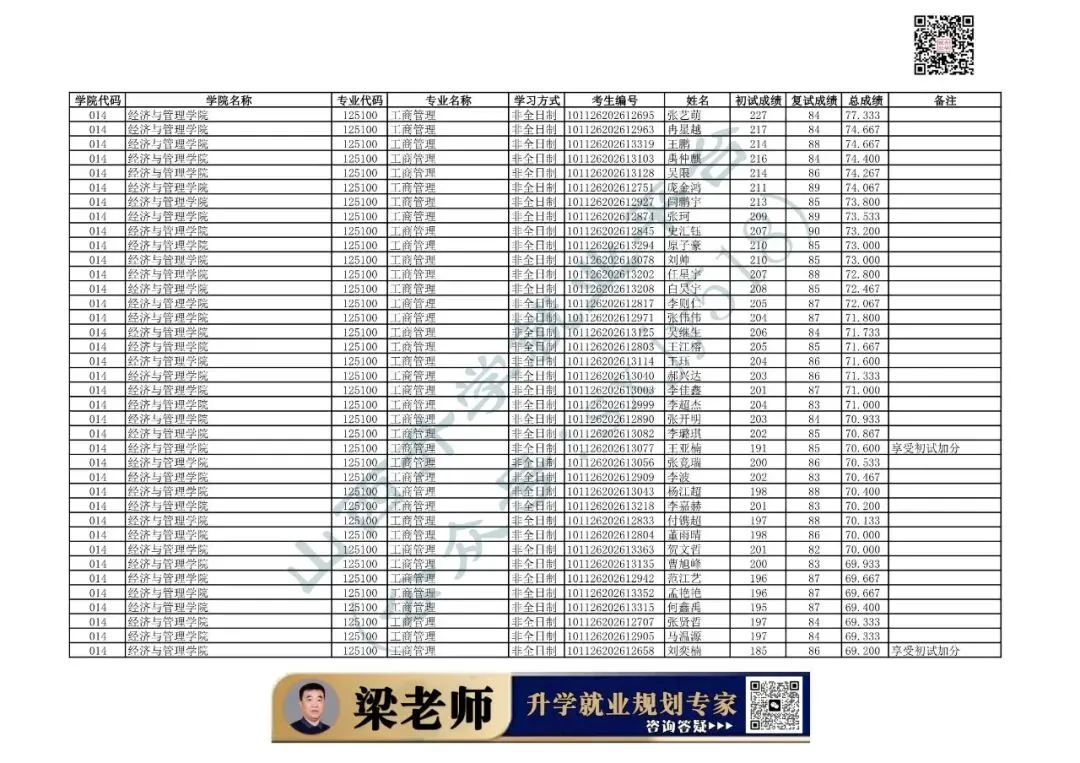 014 | 经济与管理学院 | 125100 | 工商管理 | 非全日制 | 101126202699912 | 程洋 |