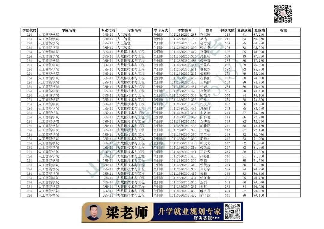 024 | 人工智能学院 | 085410 | 人工智能 | 全日制 | 101126202699907 | 冯芝蓬 |